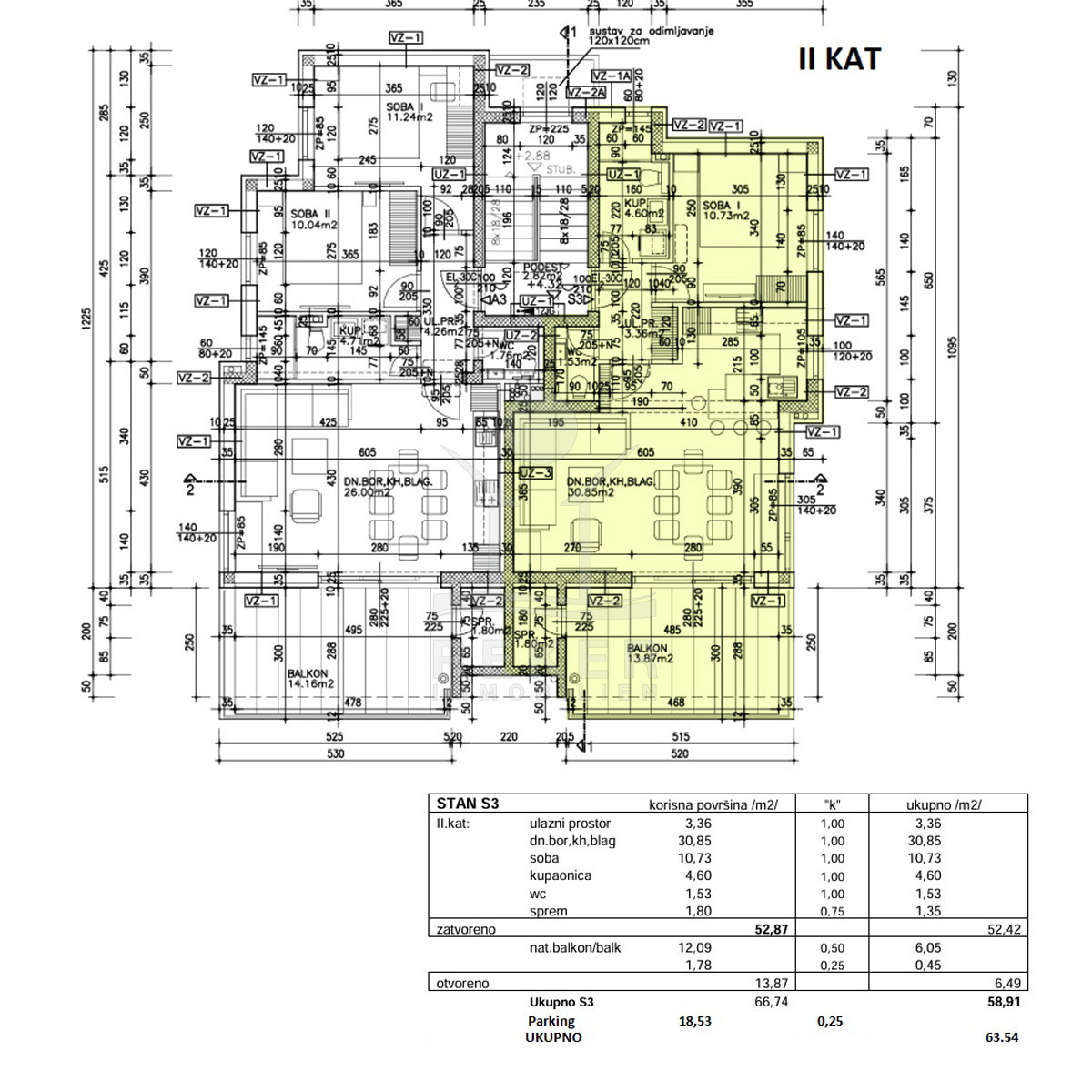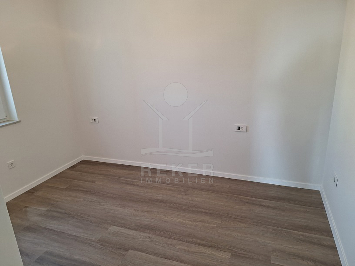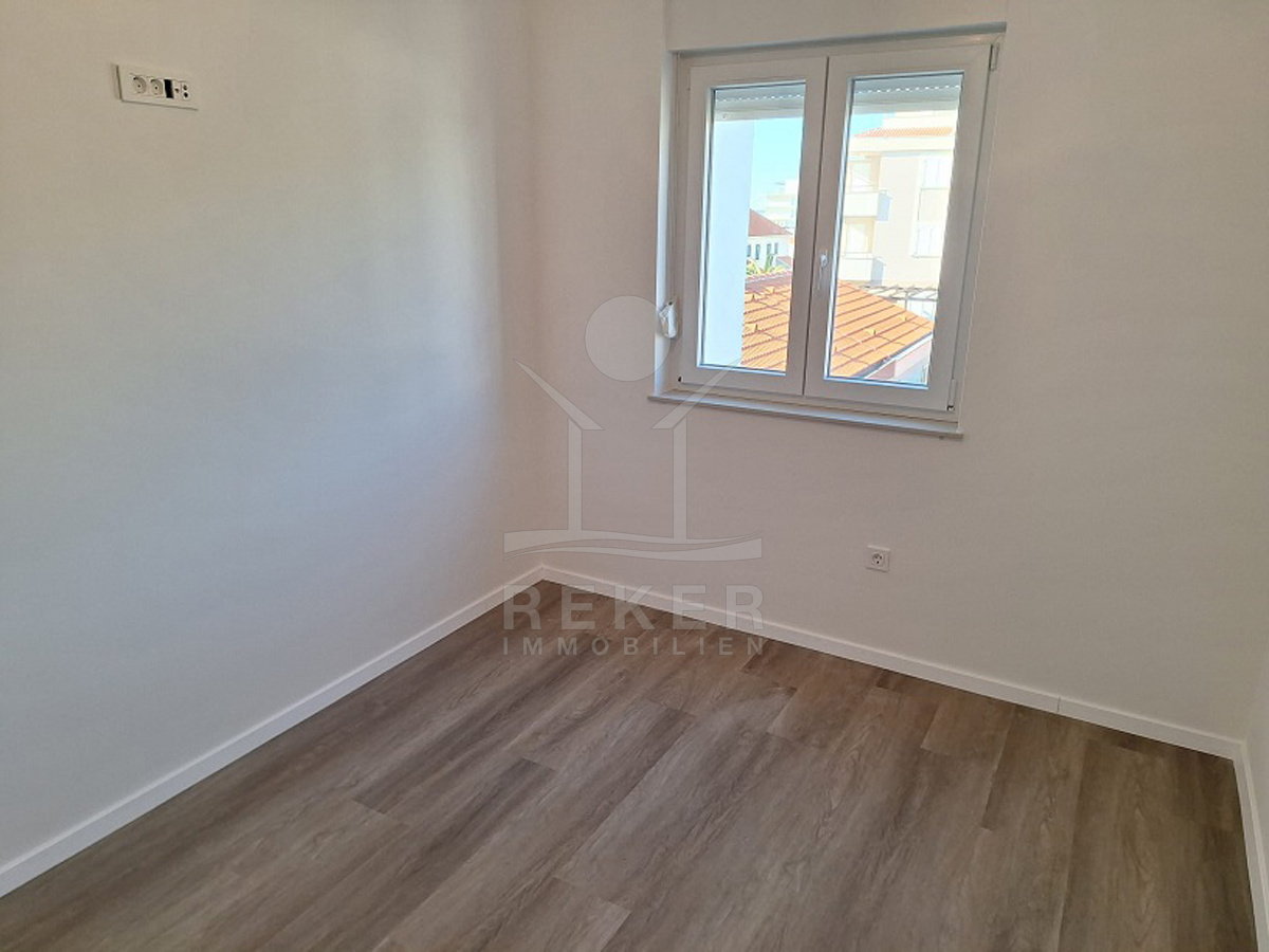 Die Wohnung befindet sich im obersten Stockwerk des Gebäudes, hell, ruhig und mit viel Privatsphäre. Das Zentrum der Wohnung ist der großzügige Wohnraum mit offener Küche und Essbereich. Drei Fenster lassen hier viel Licht hinein, dazu kommt der Zugang zum Balkon: westlich ausgerichtet und mit weitem Blick bis zum Meer.Der Balkon ist überdacht und gut geschnitten, ideal für den Alltag draußen. Abendsonne inklusive. Innen gibt es ein separates Schlafzimmer, ein modernes Badezimmer mit bodengleicher Dusche und hochwertigen Badmöbeln sowie ein zusätzliches Gäste-WC. Ein praktischer Abstellraum ergänzt die Wohnfläche. Alle Räume sind klimatisiert. TV- und Internetanschlüsse sind in allen Zimmern bereits installiert.