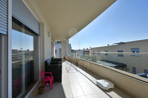 Innen zeigt sich die Wohnung modern und komfortabel. Drei Schlafzimmer, ein Badezimmer und eine hochwertige Küche mit Geräten, Geschirrspüler und Waschmaschine warten auf Sie. Klimaanlage und Fußbodenheizung schaffen zu jeder Jahreszeit angenehme Temperaturen. Die PVC-Tischlerei sorgt für solide Qualität und leichte Pflege. Mit 120 m² Wohnfläche bietet die Wohnung viel Raum. Durch die sonnige Ausrichtung ist sie angenehm hell. Ein echtes Extra ist die private Dachterrasse: geschützt, großzügig und wie geschaffen für entspannte Stunden im Freien.