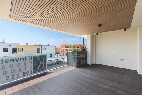 Die schöne 96,88 m² große Wohnung im ersten Stock ist bequem über einen Aufzug erreichbar. Der geräumige Wohnbereich vereint Küche, Esszimmer und gemütliches Wohnzimmer und bietet den idealen Raum für gesellige Zusammenkünfte und Entspannung. Das Apartment verfügt über zwei großzügige Schlafzimmer, jedes mit eigenem Bad für zusätzliche Privatsphäre und Komfort. Ein Abstellraum ist ideal für zusätzlichen Stauraum. Genießen Sie den Zugang zu einem 20,30 m² großen überdachten Balkon, der perfekt ist, um draußen zu entspannen und den Tag ausklingen zu lassen.