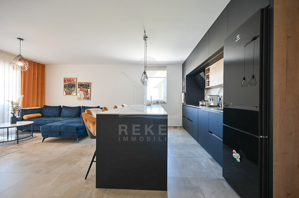Diese moderne Wohnung in Novigrad begeistert durch klare Architektur und eine Lage, die Meer und Stadt angenehm verbindet. Nur etwa 1000 Meter vom Meer entfernt wohnen Sie ruhig, mit kurzen Wegen zur Strandpromenade, zu Geschäften und Restaurants. Das Meer im Blick, das Zentrum nah. Ihr eigener Stellplatz macht den Alltag bequem.