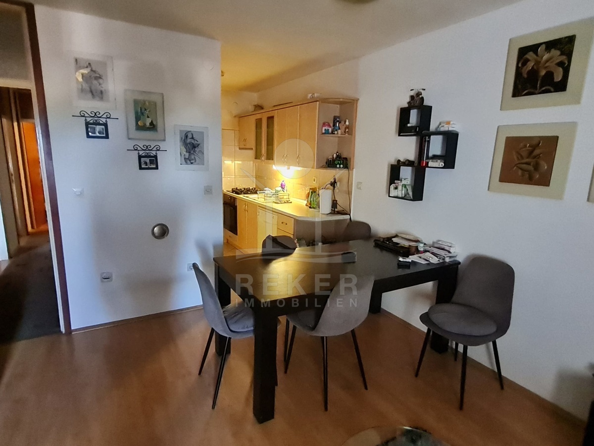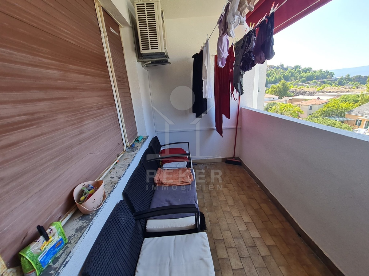 Die Wohnung ist mit einer Klimaanlage ausgestattet und bietet eine angenehme Wohnatmosphäre. Sie verfügt über 2 behagliche Schlafzimmer, 1 Badezimmer und eine einladende Küche. Der offene Ess- und Wohnbereich führt zu einer Loggia, von der aus Sie den herrlichen Blick auf das Meer und die umliegenden Inseln genießen können. Zusätzlich ist im Preis ein Holzschuppen im Keller des Gebäudes enthalten, der zusätzlichen Stauraum bietet und praktisch für saisonale Gegenstände oder Freizeitbedarf ist.