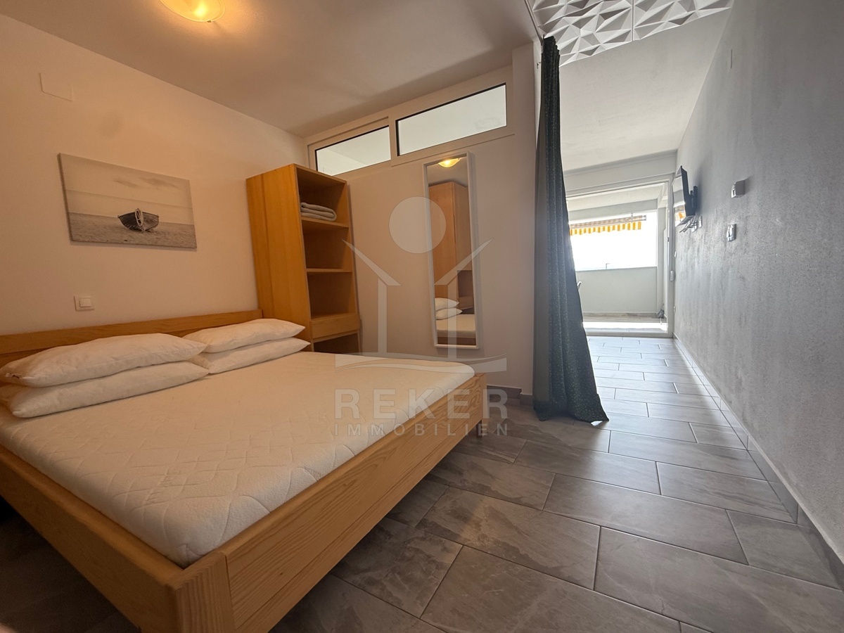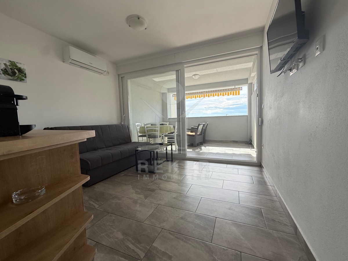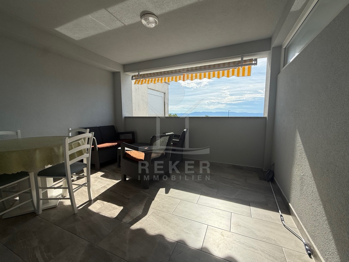 Die Terrasse mit 16,42 m² wird schnell zum bevorzugten Bereich im Freien. Ein guter Ort, um die Aussicht zu genießen und den Abend entspannt ausklingen zu lassen. Hochwertige Ausstattung, Klimaanlage und eine pflegeleichte Ausführung schaffen Komfort und einen angenehmen Wohnwert. Der weite Blick über das Meer verleiht der Wohnung eine besondere Note auf der Insel Krk.