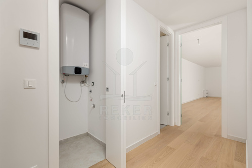 Diese Wohnung liegt ruhig im Untergeschoss. Der offene Wohnbereich misst über 44 m² und bietet Platz für Küche, Esstisch und Wohnzimmer in einem hellen, gut geschnittenen Raum. Wer gern großzügig wohnt, findet hier Raum ohne Verschwendung. Zwei Schlafzimmer, beide mit eigenem Bad. Das schafft klare Verhältnisse ... perfekt für Paare, Gäste oder gemeinsames Wohnen mit Privatsphäre. Die zusätzliche Ankleide ergänzt das Raumangebot um eine praktische und elegante Lösung für Ordnung oder Homeoffice. Ein separates Gäste-WC im Eingangsbereich sorgt für zusätzlichen Komfort. Die hochwertige Ausstattung zieht sich durch alle Räume: Aluminiumfenster mit elektrischen Jalousien, Fan-Coil-System für Heizung und Kühlung, moderne Sanitärkeramik, einbruchsichere Eingangstür.