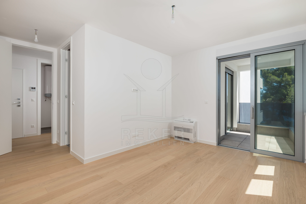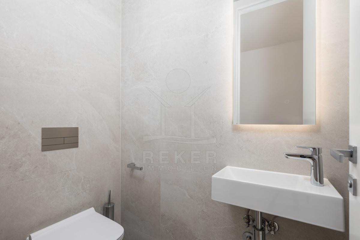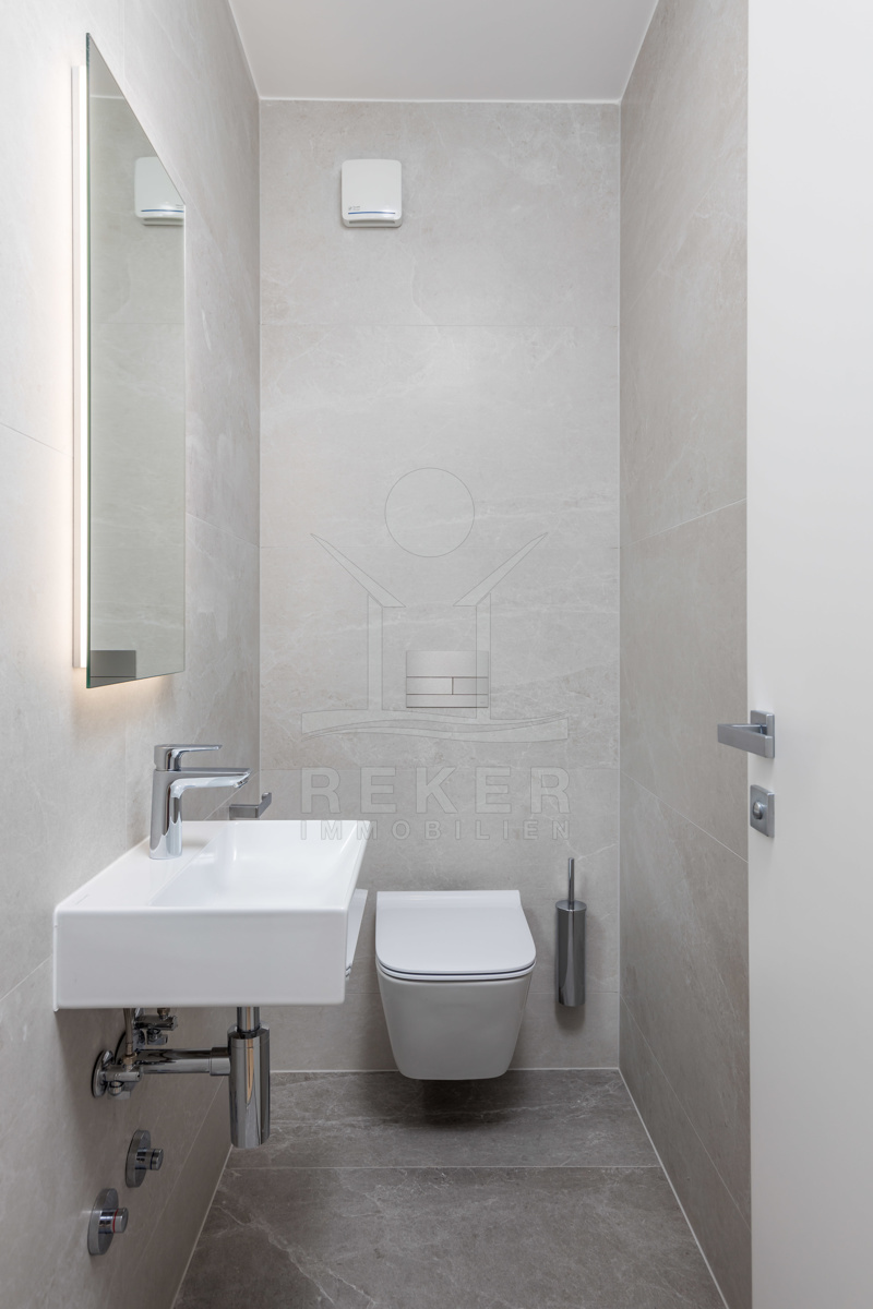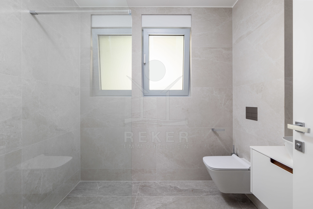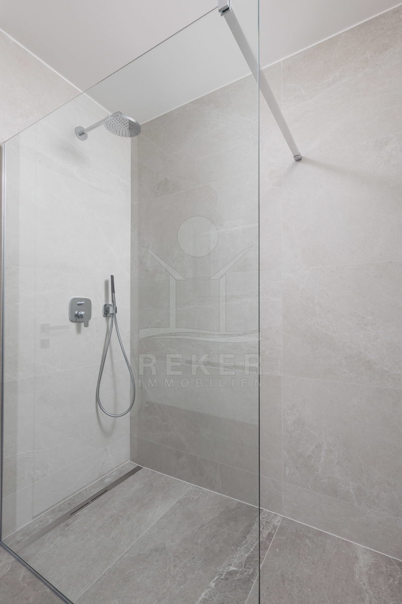 Hochwertige Materialien und moderne Technik … Elektrische Jalousien, Aluminiumfenster, Fußbodenheizung mit Fan-Coil-System, hochwertige Bäder und eine einbruchsichere Eingangstür gehören zur Standardausstattung. Zwei Tiefgaragenplätze, ein Außenstellplatz und zwei praktische Abstellräume sind ebenfalls dabei.