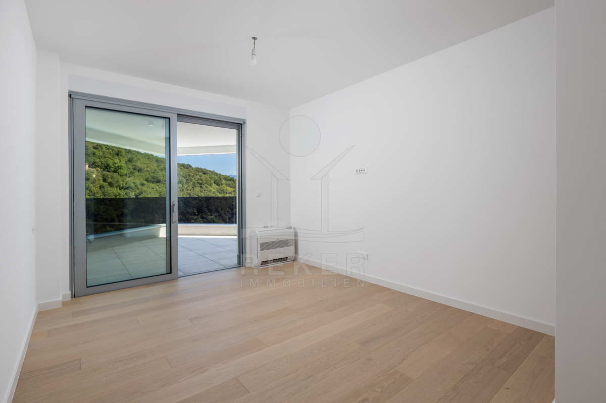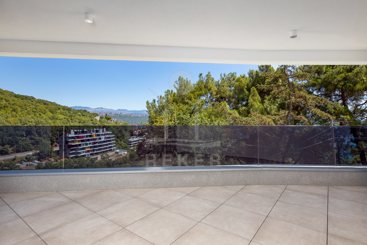 Die Wohnanlage liegt ruhig am Waldrand. Erhöht, mit freiem Blick aufs Meer und das Zentrum von Opatija. Sie erreichen alles bequem zu Fuß – vom gepflegten Stadtpark über charmante Boutiquen bis zu den Stränden der Adria. Trotz der Nähe zum Geschehen ist es angenehm ruhig. Kein Durchgangsverkehr, kein Lärm. Nur dieser unverbaubare Ausblick und die Ruhe der Natur. Perfekt für alle, die Komfort schätzen, aber auf Privatsphäre nicht verzichten wollen ... viel Grün, angenehme Ruhe und dieser besondere Blick auf die Adria.