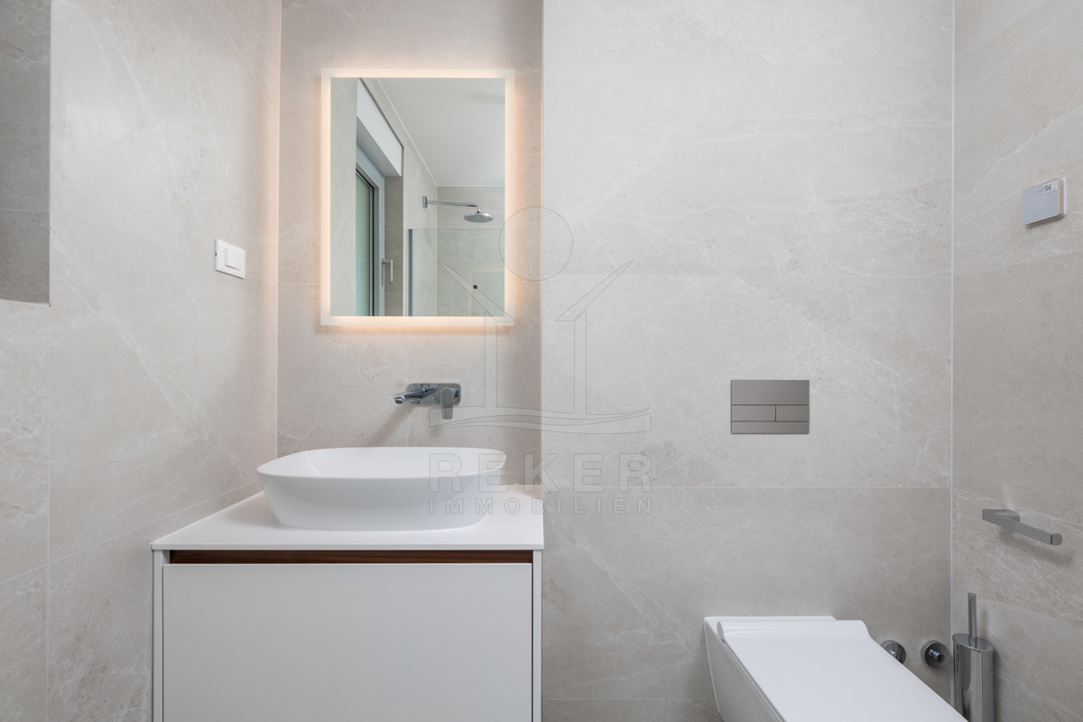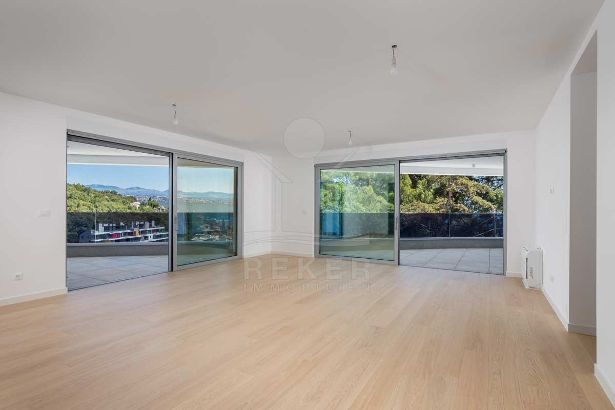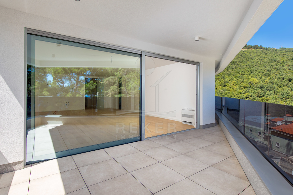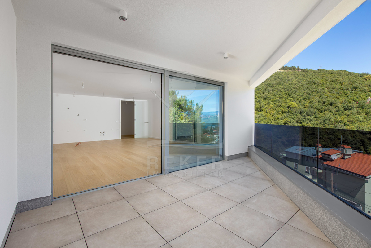 Besonders schön ist der Außenbereich: Fünf Balkone mit zusammen über 64 m² Fläche geben Ihnen viel Raum für sich – mit freiem Blick aufs Meer und das Zentrum von Opatija. Jeder Balkon ist anders ausgerichtet. So haben Sie zu jeder Tageszeit den passenden Platz an der frischen Luft.