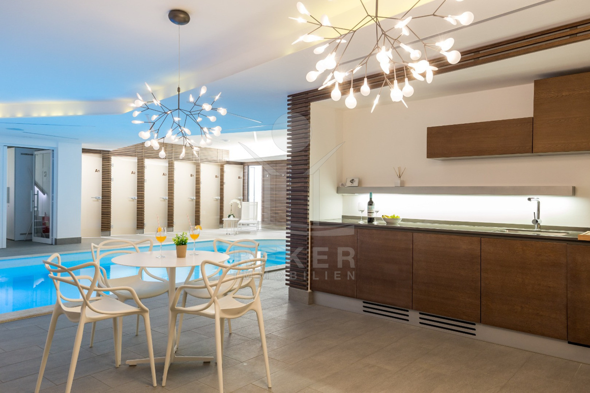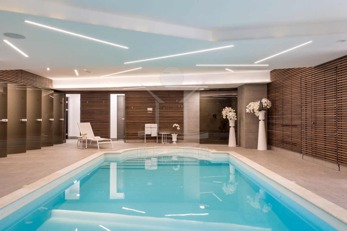 Besonderes Extra: ein beheizter Innenpool für alle Bewohner. So können Sie auch im Winter entspannt Ihre Bahnen ziehen. Die Wege zur Villa sind gepflegt, das Gelände wirkt wie natürlich hineingewachsen, nicht aufgesetzt, sondern stimmig. Wenn Sie auf der Suche nach einem Ort sind, an dem Sie ganz für sich sein können, mit Meerblick und Stil, dann schauen Sie sich diese Immobilie genauer an.