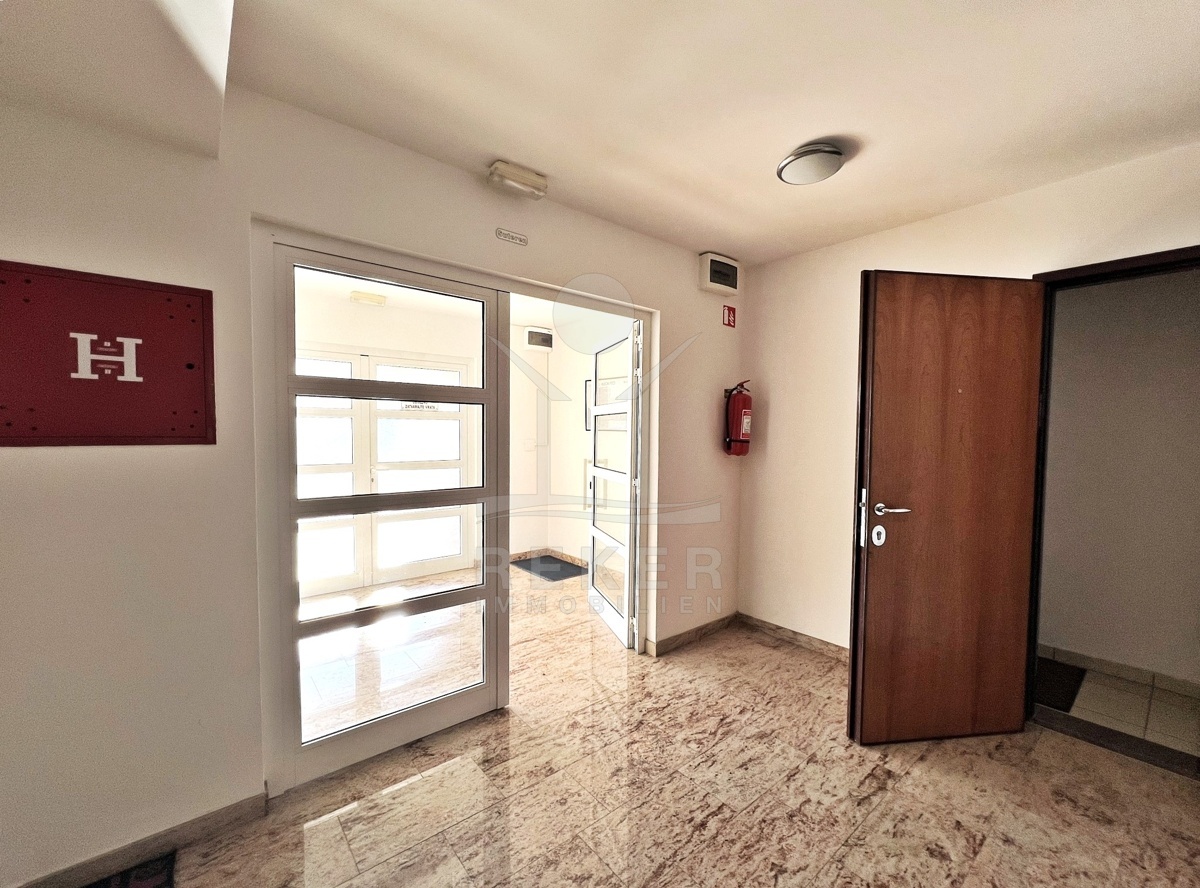 In Opatija wartet diese gepflegte Wohnung. Sie wohnen in einer ruhigen Seitenstraße, nur zehn Minuten zu Fuß vom Meer entfernt. Das Gebäude wurde 2007 errichtet, verfügt über einen Aufzug und ist in gutem Zustand. Im Untergeschoss gehört eine 29 m² große Garage dazu, ausreichend für zwei kleinere Fahrzeuge.