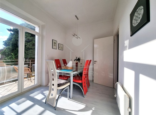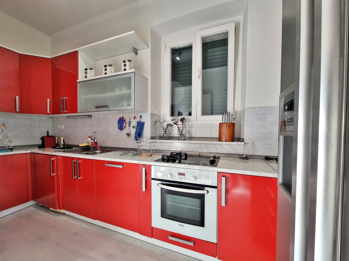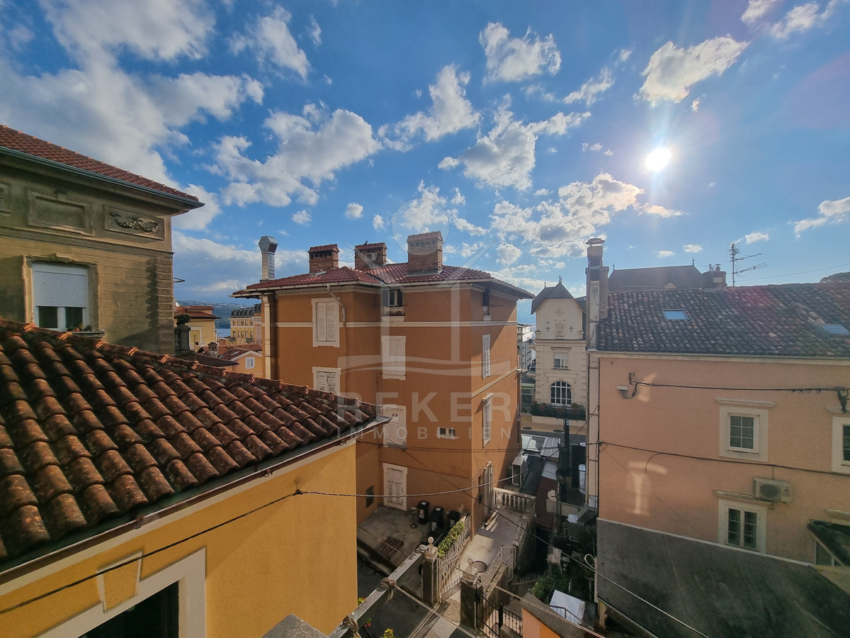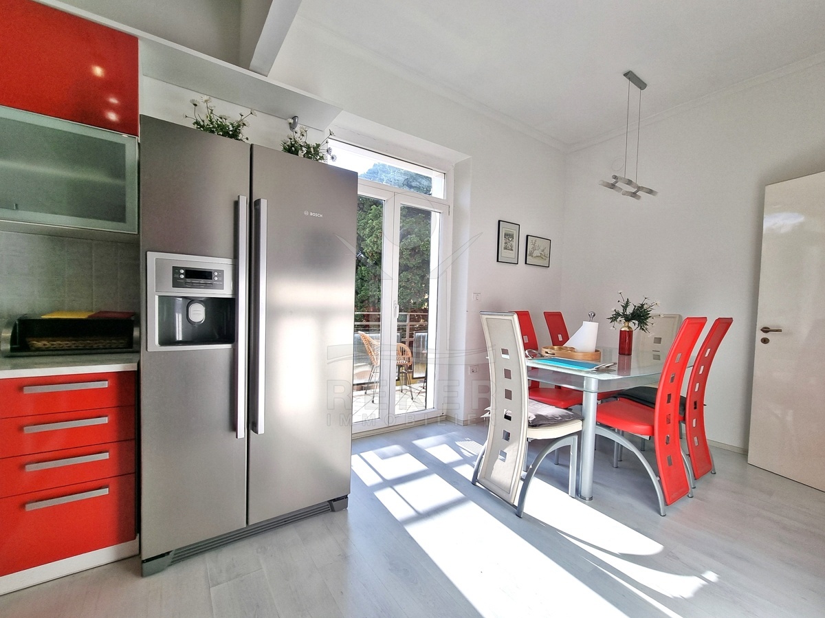 Diese Wohnung erzählt Geschichte und verbindet sie mit modernem Wohnkomfort. Sie befindet sich im ersten Stock einer österreichisch-ungarischen Villa, nur rund 200 Meter von der Hauptpromenade und dem Meer entfernt. Geschäfte, Schulen und öffentliche Verkehrsmittel sind bequem zu Fuß erreichbar. Das Auto darf also öfter stehenbleiben.
