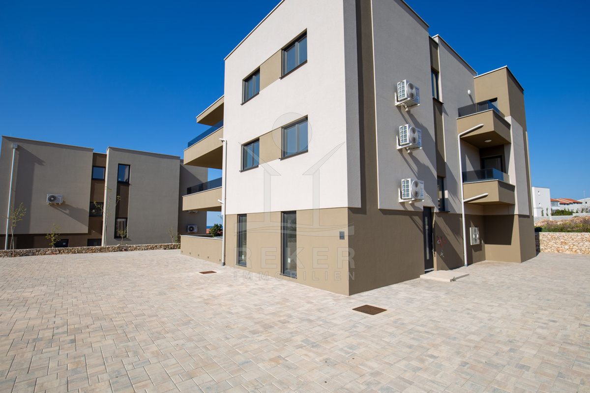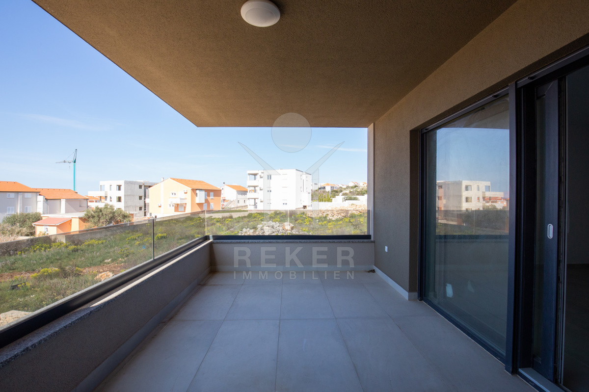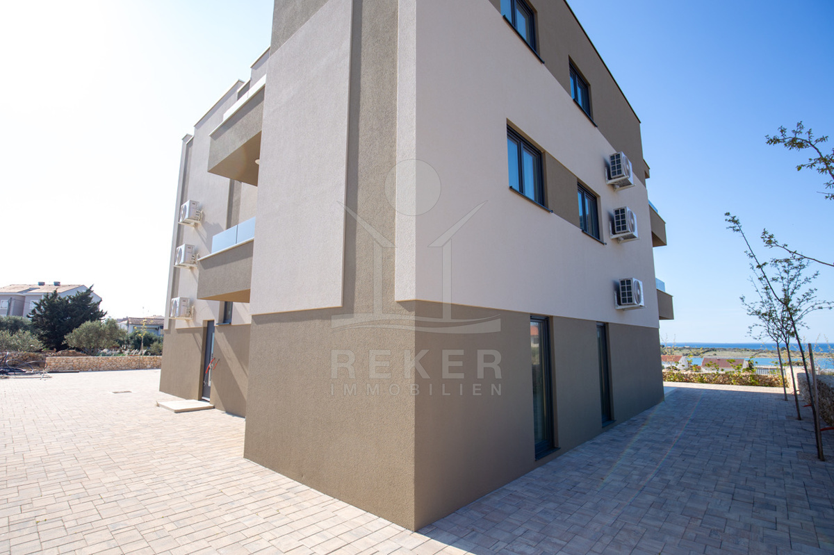 Neubau in Novalja, 350 Meter vom Strand. Sonne, Salzluft, Meer – alles zu Fuß erreichbar. Die Lage? Ruhig. Ein guter Platz für entspannte Tage. Oder für alle, die einfach gern nah am Wasser wohnen.