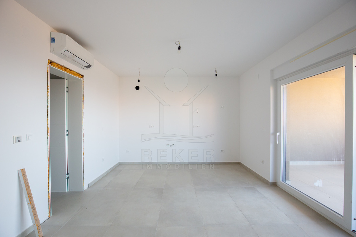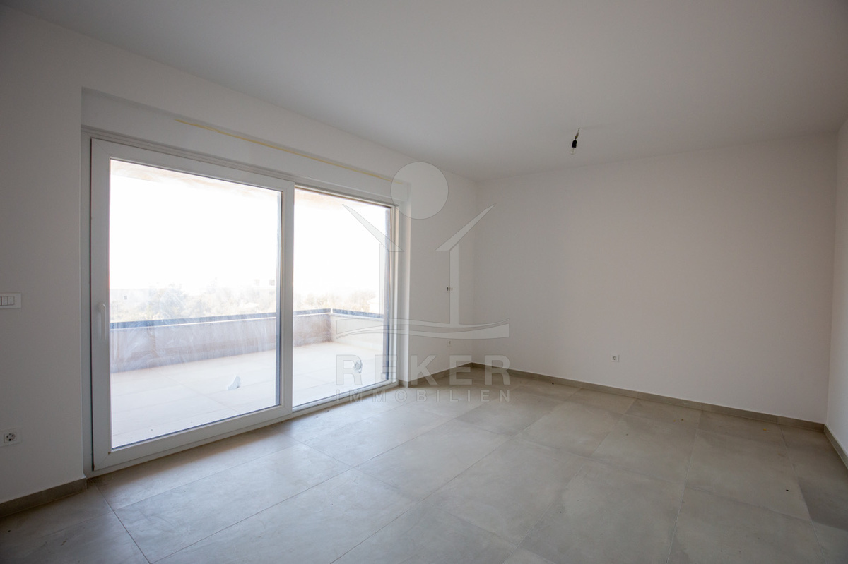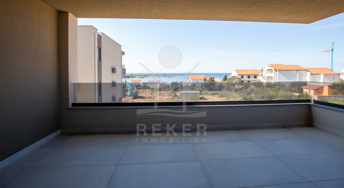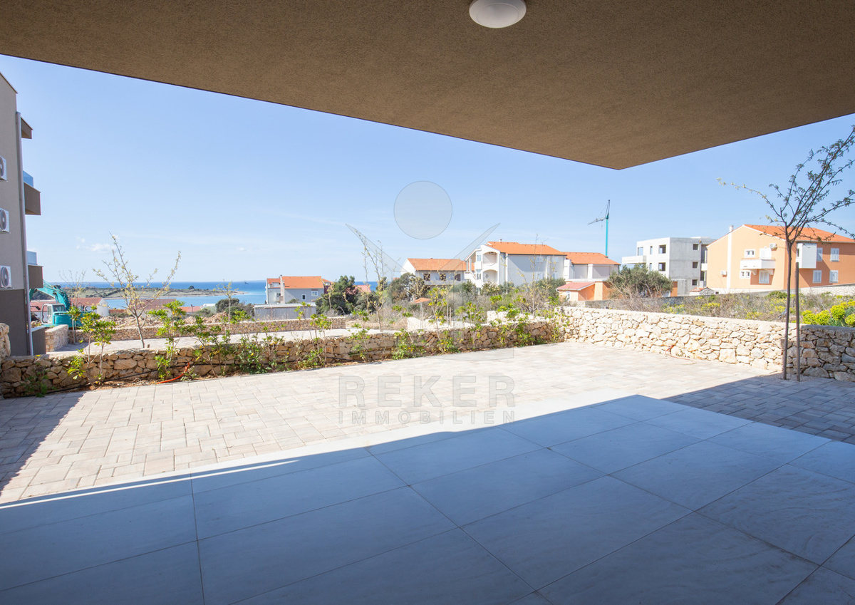Neubau in Novalja, 350 Meter vom Strand. Sonne, Salzluft, Meer – alles zu Fuß erreichbar. Die Lage? Ruhig. Ein guter Platz für entspannte Tage. Oder für alle, die einfach gern nah am Wasser wohnen.