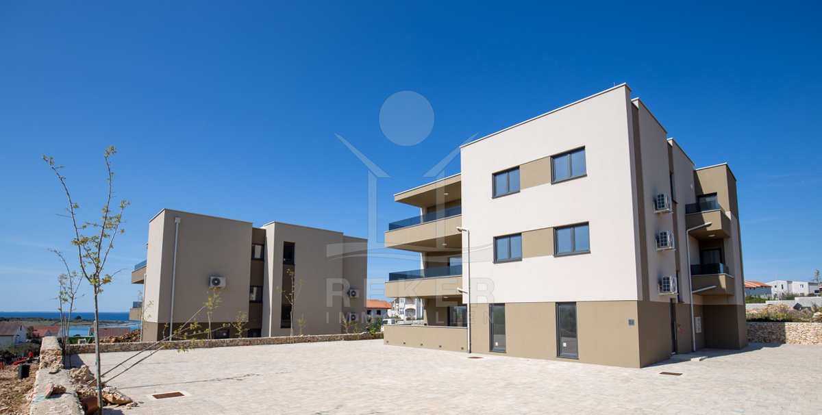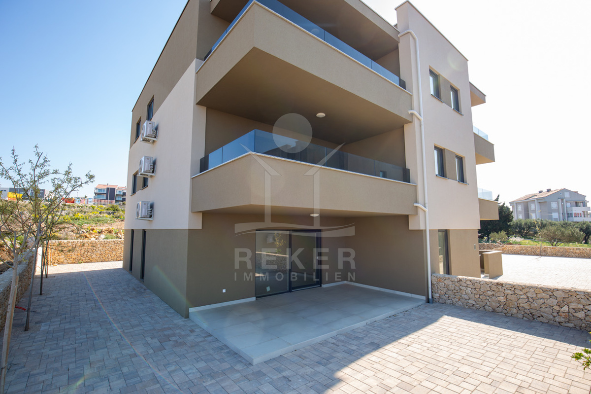 Neubau in Novalja, 350 Meter vom Strand. Sonne, Salzluft, Meer – alles zu Fuß erreichbar. Die Lage? Ruhig. Ein guter Platz für entspannte Tage. Oder für alle, die einfach gern nah am Wasser wohnen.