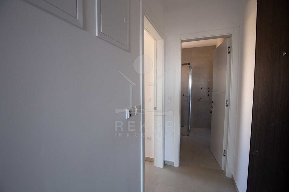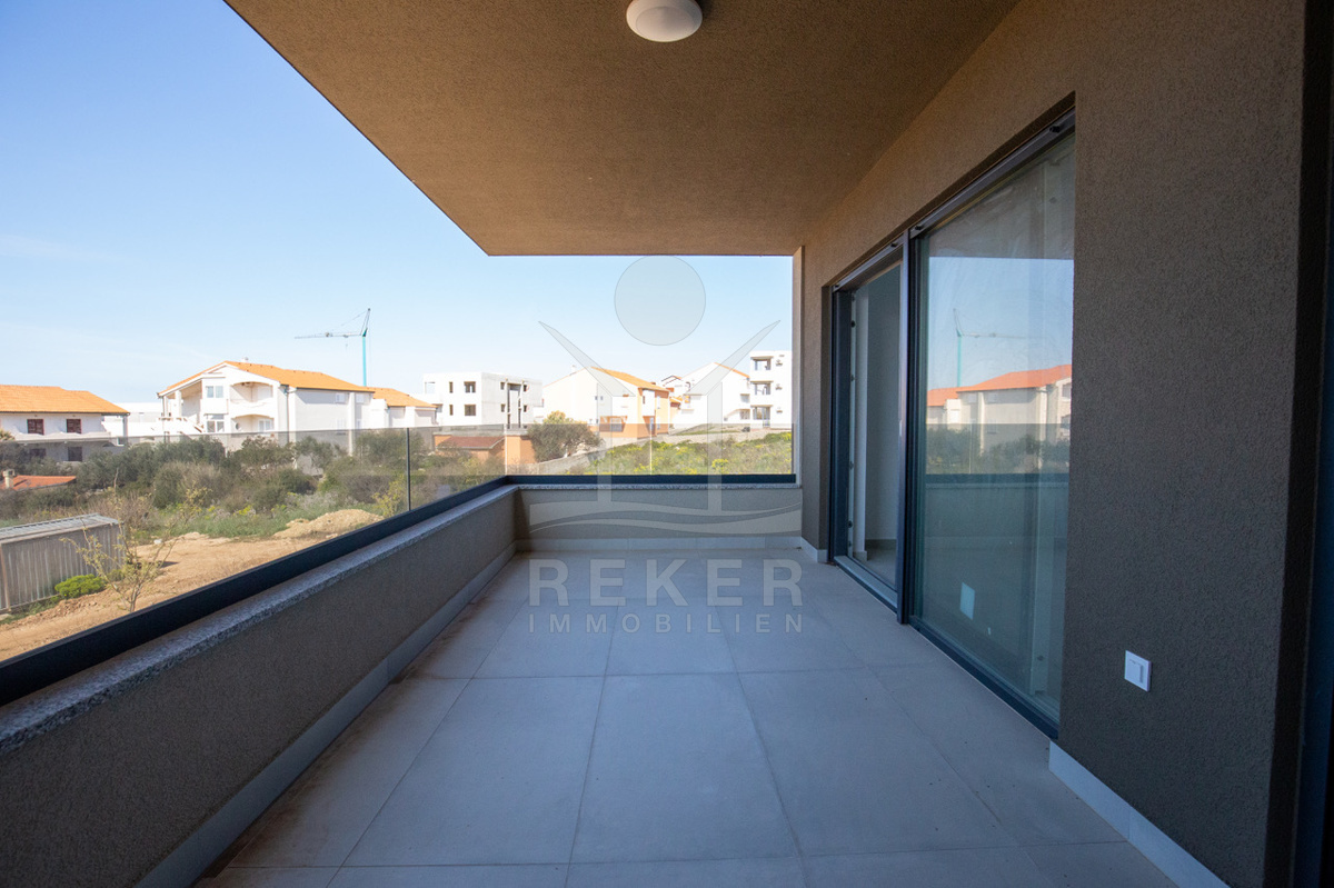 Novalja. Insel Pag. Klare Luft, ruhige Nachbarschaft, direkter Meerblick. Kein Trubel, einfach nur Wasser. Jede Wohnung schaut aufs Meer. Die Parkplätze? Direkt neben dem Haus. Die Zufahrt? Unkompliziert. So sieht eine entspannte Lage aus.