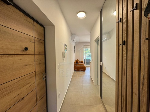 Der offene Wohnbereich ist freundlich gestaltet. Eine maßgefertigte Küche mit modernen Geräten fügt sich harmonisch ein. Der Essbereich und die Sitzecke schaffen eine angenehme Atmosphäre. Vom Wohnzimmer gelangen Sie direkt auf die Terrasse … ein schöner Platz, um den Tag am Meer zu beginnen. Im Schlafzimmer sorgen hochwertige Möbel und geschmackvolle Wandgestaltung für Komfort. Große Fenster bringen viel Licht in den Raum. Das Bad ist modern ausgestattet, mit Dusche, eleganten Fliesen und Waschmaschine.