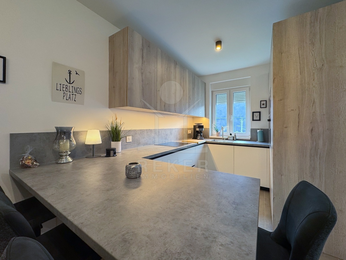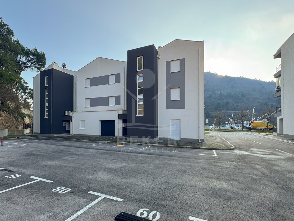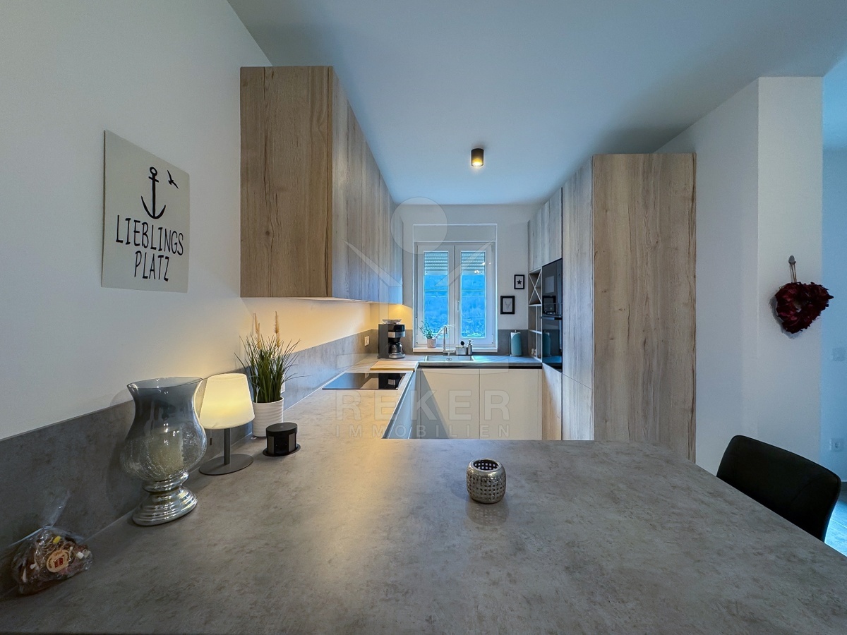 Die Wohnung befindet sich im zweiten Stock eines modernen Gebäudes aus dem Jahr 2022 und verfügt über 86,65 m² Wohnfläche. Der offene Wohnbereich mit hochwertig ausgestatteter Küche öffnet den Blick direkt auf das Meer. Große Glasflächen bringen Licht und Weite in den Raum. Vom Essbereich gelangen Sie auf die überdachte Terrasse mit Panoramablick über den Hafen. Ein Ort, um den Tag entspannt ausklingen zu lassen.