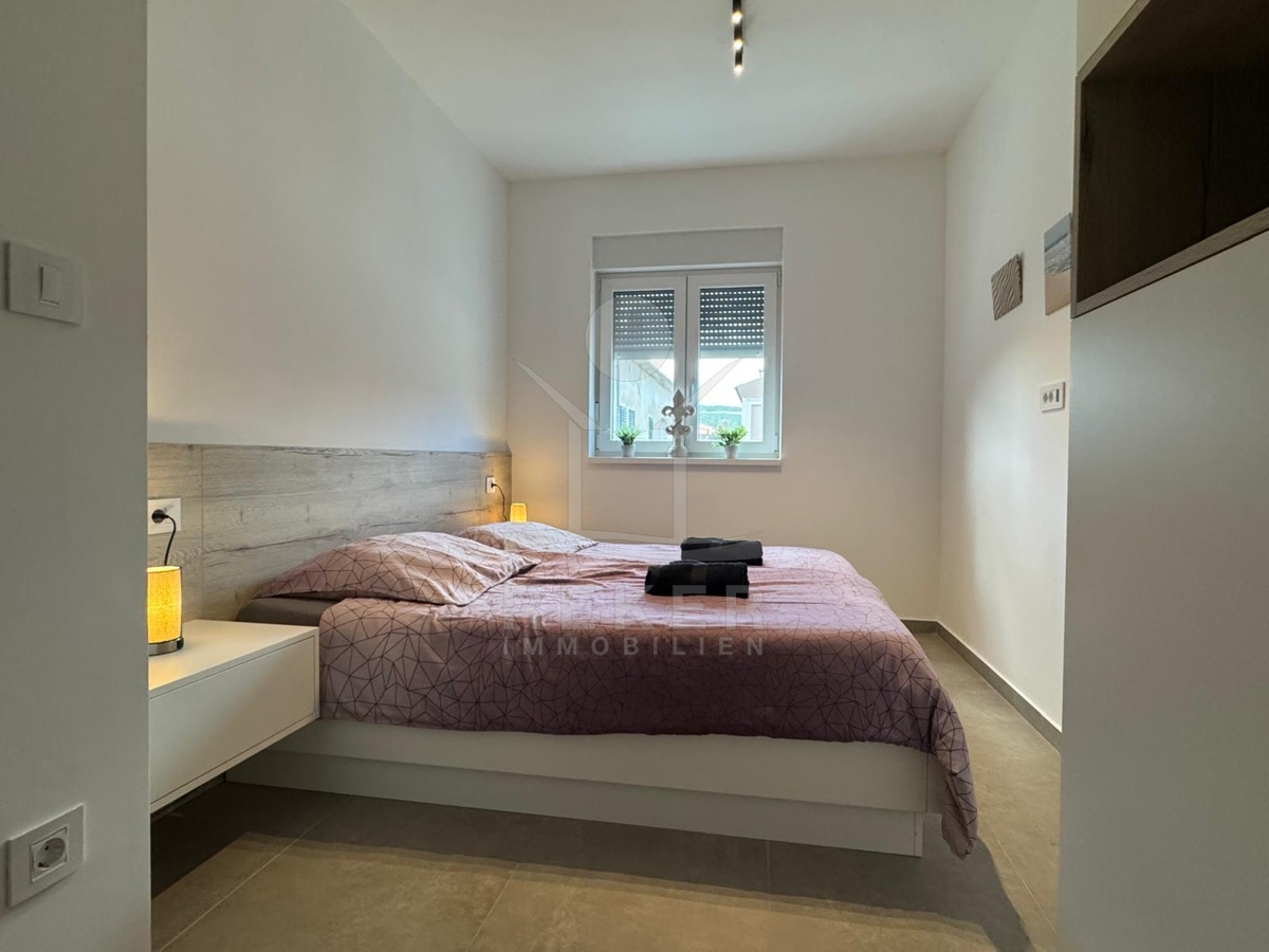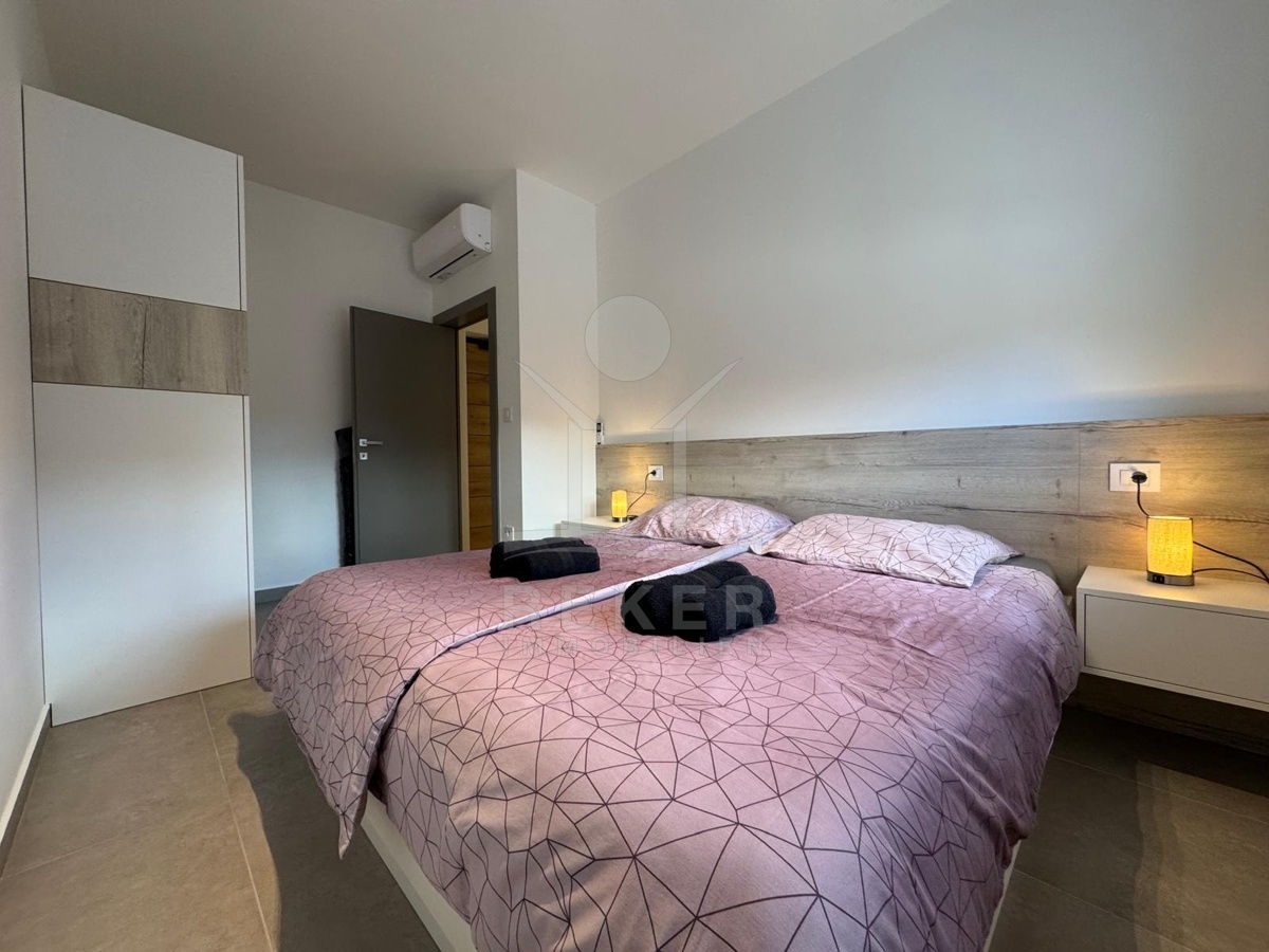 In einem kleinen Fischerdorf an der Ostküste Istriens, erwartet Sie eine elegante Neubauwohnung im ersten Stock eines modernen Gebäudes. Hier treffen Ruhe, mediterranes Flair und Meerblick aufeinander. Ideal für alle, die Entspannung suchen und trotzdem eine gute Anbindung an Labin und Rabac schätzen. Ein privater Parkplatz ist bereits im Preis enthalten. Das Haus wurde 2021 errichtet und präsentiert sich in ausgezeichnetem Zustand. Komfort, Energieeffizienz und die ruhige Umgebung schaffen ein angenehmes Wohnambiente.