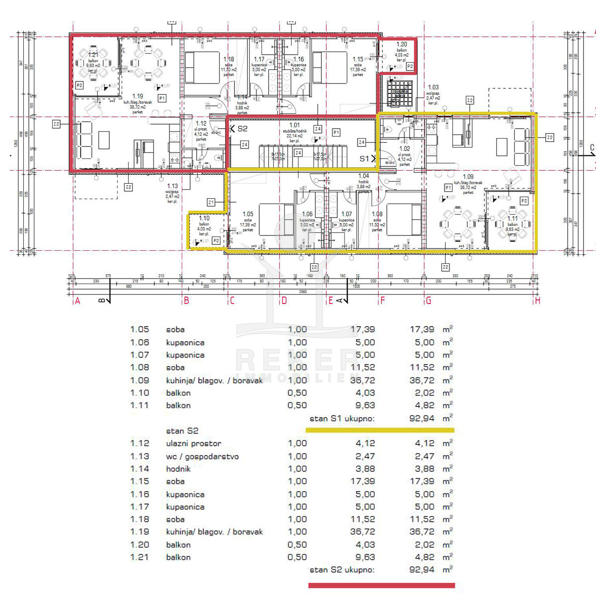 Mit einem beeindruckenden Grundriss von 93 m² bietet diese Wohnung großzügigen Raum und Flexibilität für zeitgemäße Lebensstile. Der Eingangsbereich und der Flur führen Sie in ein offenes Wohn-, Ess- und Küchenzimmer. Die lichtdurchfluteten Räume schaffen eine einladende Atmosphäre und idealen Raum für gesellige Zusammenkünfte. Zwei komfortable Schlafzimmer l bieten genügend Platz für alle persönlichen Bedürfnisse. Darüber hinaus verfügt die Wohnung über 2 Badezimmer und ein zusätzliches Gäste-WC, das ideal für Besuche ist und zusätzlichen Komfort bietet. Die 2 Balkone (14 m²) sind der perfekte Ort, im Freien zu verweilen und die herrliche Umgebung zu bewundern.