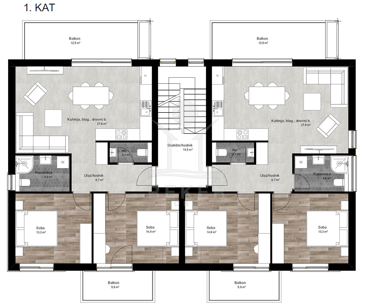 NEUBAU 2025 BEI POREČ: WOHNUNG IM 1. OBERGESCHOSS MIT ZWEI BALKONEN UND MODERNER AUSSTATTUNG