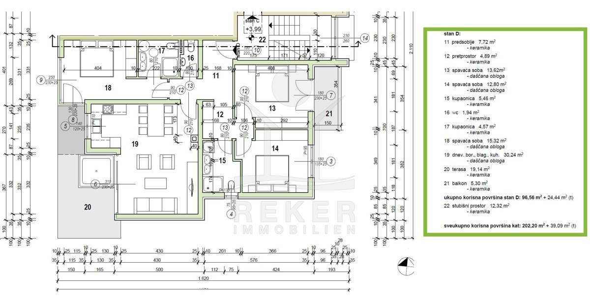 Die Wohnung besticht durch eine beeindruckende offene Gestaltung mit großen Fenstern, die für helle, luftige Atmosphären sorgen. Auf einer großzügigen Wohnfläche von 97 m² erwartet Sie eine traumhafte 16 m² große Terrasse mit Whirlpool, ideal zum Entspannen und Genießen. Die durchdachte Raumaufteilung umfasst ein lichtdurchflutetes Wohn-, Ess- und Küchenzimmer, 3 Schlafzimmer und 2 Bäder, darunter ein Hauptschlafzimmer mit eigenem Badezimmer für höchste Privatsphäre. Ein Gäste-WC und ein praktischer Abstellraum von 8 m² sind ebenfalls vorhanden. Der Parkplatz rundet dieses attraktive Angebot ab.