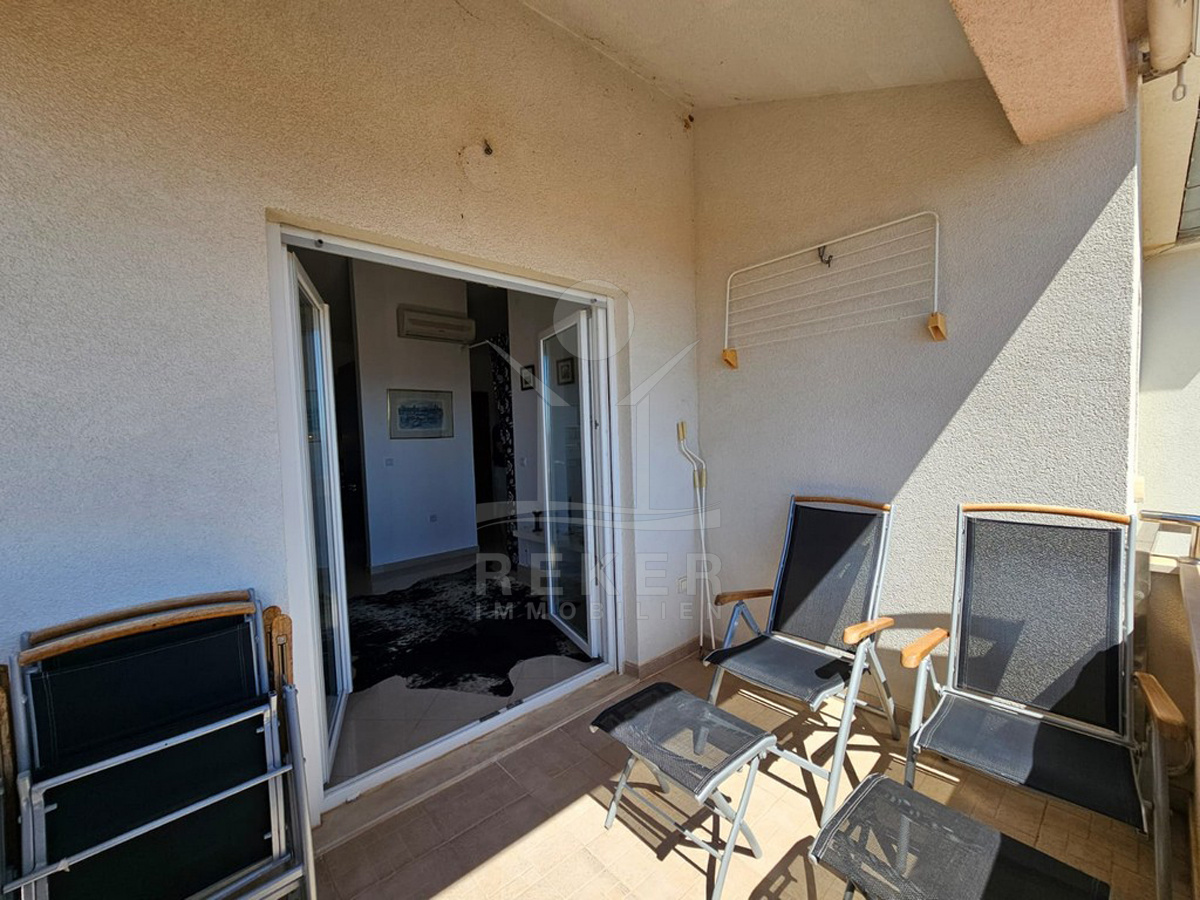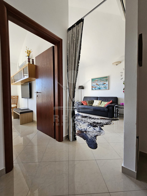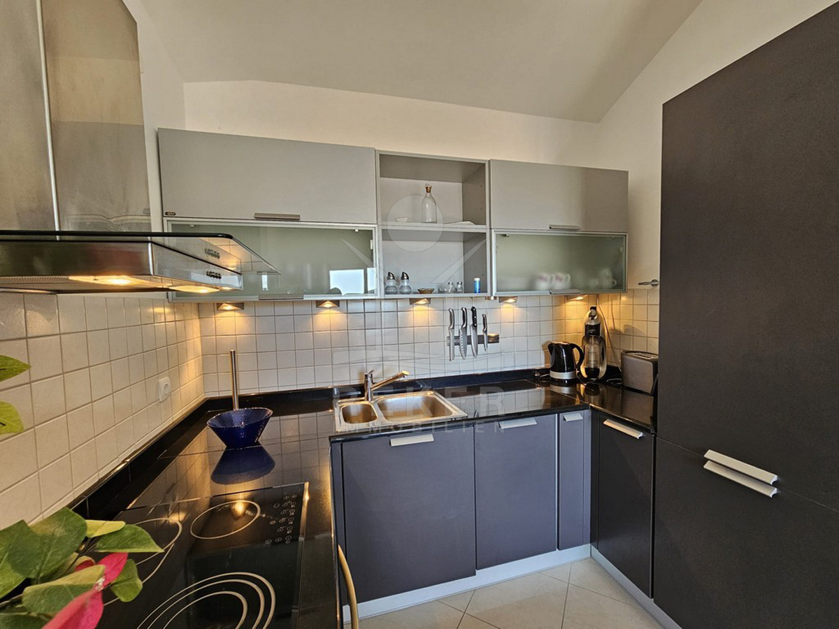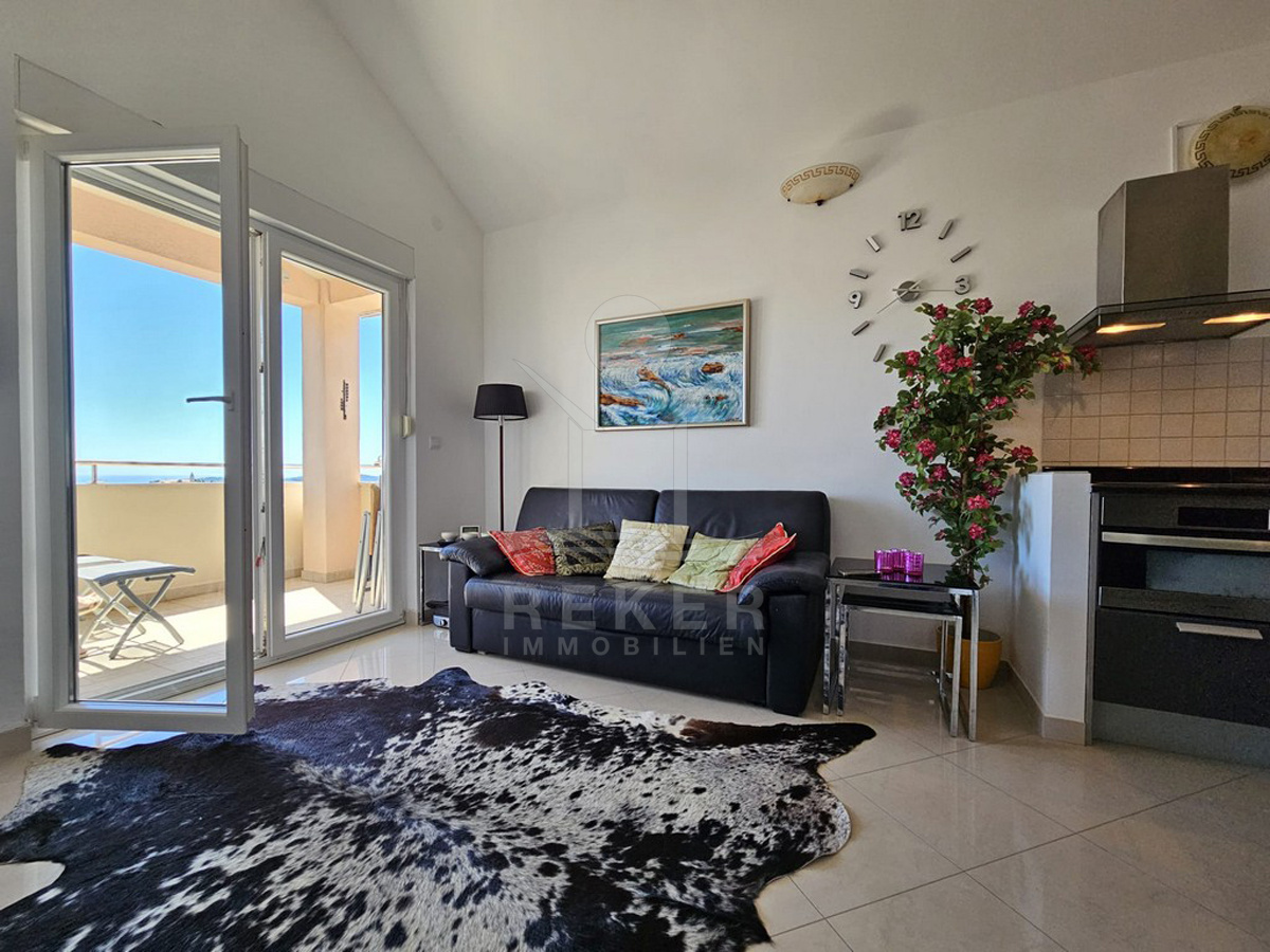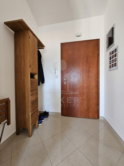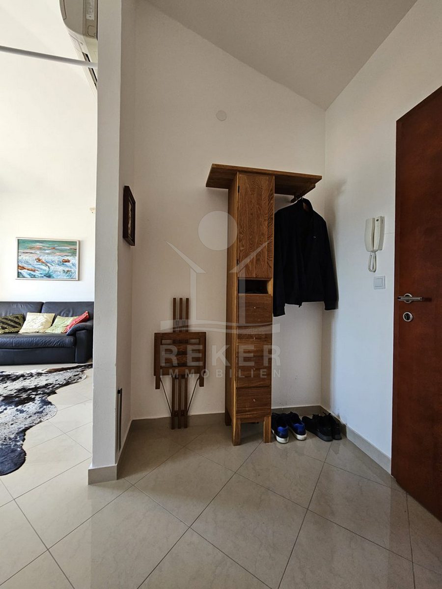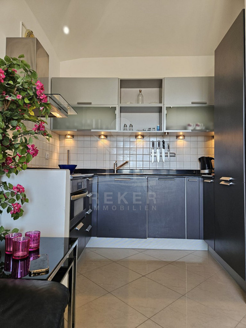 Die Wohnung bietet 44,04 m² Nutzfläche mit klarer Aufteilung. Sie präsentiert sich sehr gepflegt und geschmackvoll eingerichtet. Der Flur führt Sie in das Schlafzimmer, in das Badezimmer sowie in die Küche mit Ess- und Wohnbereich. Von hier aus betreten Sie die ca. 7 m² große Loggia, ein Platz mit beeindruckendem Panorama über Meer und Inseln. Gerade in den Abendstunden zeigt sich hier die besondere Qualität dieser Einheit. Für angenehme Temperaturen sorgt eine Klimaanlage, die auch die Beheizung übernimmt.