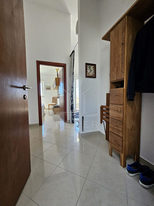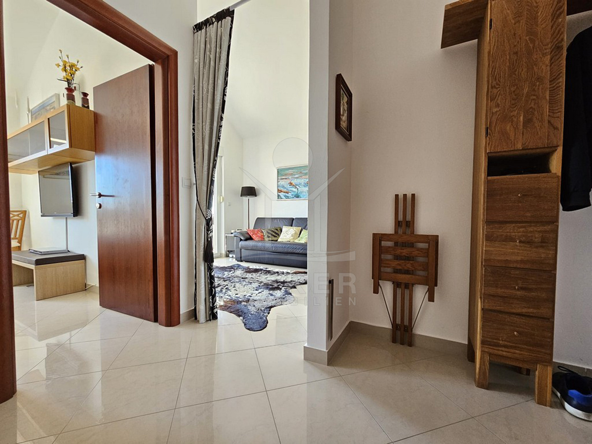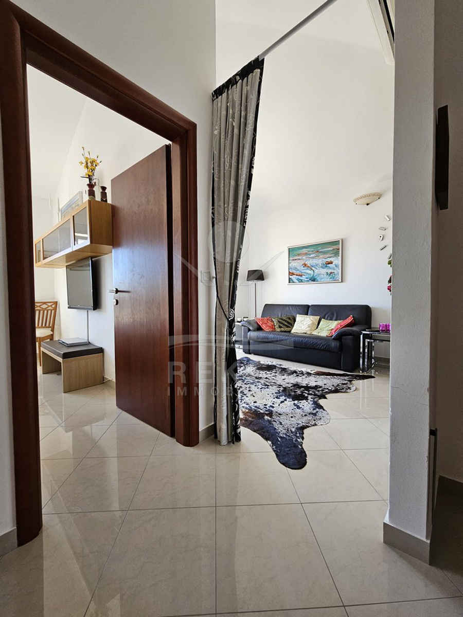 In ruhiger Lage von Primošten erwartet Sie ein gepflegtes Wohngebäude mit neun Einheiten. Die angebotene Dachgeschosswohnung profitiert von ihrer Südausrichtung und eröffnet einen weiten Blick auf Primošten, das offene Meer und die vorgelagerten Inseln. Das Zentrum erreichen Sie in nur ca. 220 m. Strand und Meer sind rund 320 m entfernt. Ein Parkplatz mit ca. 12 m² steht direkt vor dem Haus zur Verfügung. Das 2006 errichtete Gebäude ist an das städtische Wassernetz, Strom und eine Senkgrube angeschlossen.