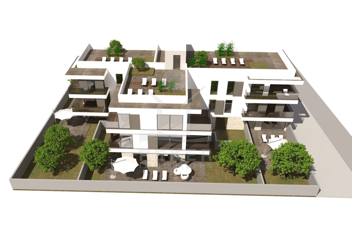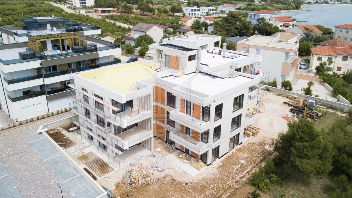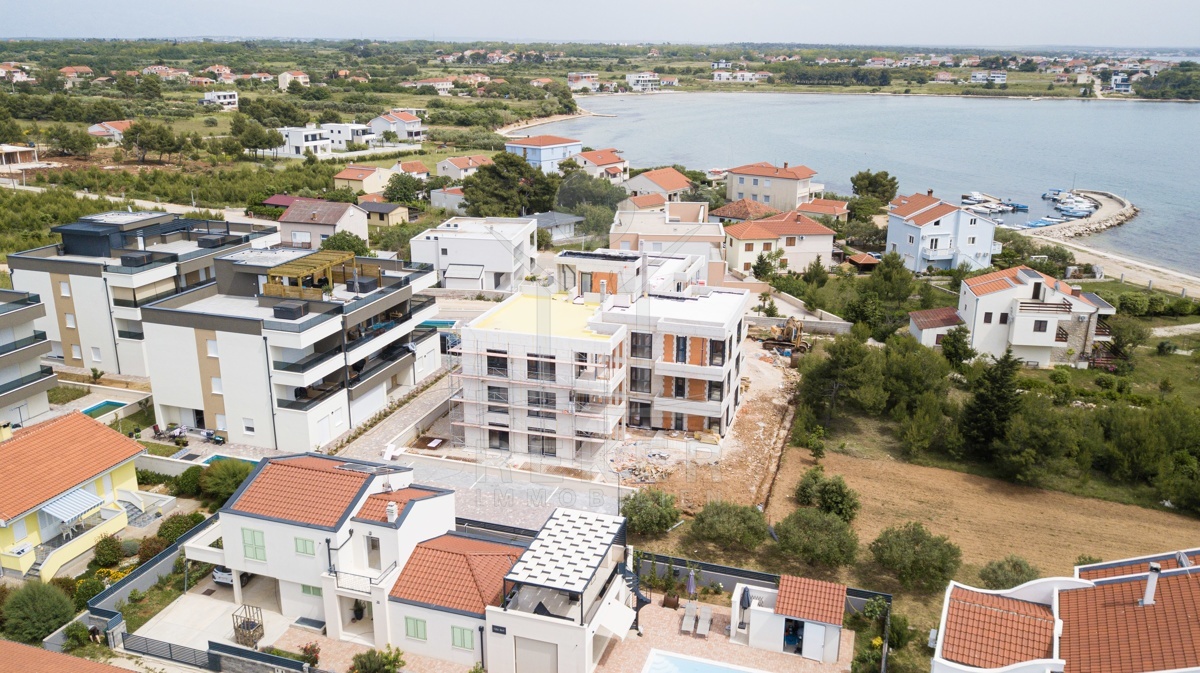 Der moderne Neubau befindet sich in Privlaka, nur 60 Meter vom Meer entfernt in einer ruhigen Umgebung mit viel Grün. Die 2. Meeresreihe gewährt einen ungehinderten Blick auf die malerische Meeresküste. Ein bequemer Weg führt von der Wohnung direkt zum Meer, sodass Sie die Küste jederzeit mühelos erreichen können.