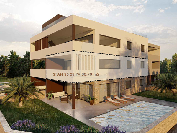 In Privlaka, an der sonnigen Adriaküste bei Zadar, entsteht ein Neubau, der Eleganz und Nähe zum Meer verbindet. Nur 50 Meter trennen Sie vom feinen Sandstrand. Die Umgebung zeigt gepflegte Häuser, ruhige Wege und eine angenehme Atmosphäre. Ideal für alle, die Erholung und ein hochwertiges Umfeld schätzen.