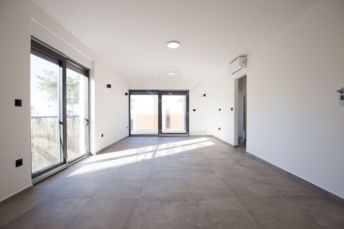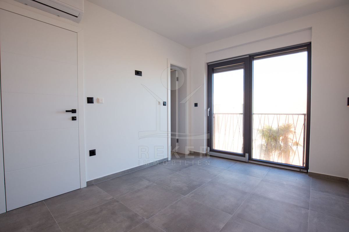 Die exklusive Wohnung befindet sich im 1. Stock eines Gebäudes mit insgesamt 6 Wohneinheiten. Mit einer Wohnfläche von 78 m² bietet die Wohnung ausreichend Platz für Komfort und Stil. Hochwertige Materialien namhafter Hersteller wurden bei Konstruktion und Einrichtung verwendet, einschließlich Dreifachverglasung, Jalousien und Moskitonetzen. Die einbruchhemmende und feuerbeständige Eingangstür sorgt für zusätzliche Sicherheit. Die Wohnung verfügt über Fliesenböden und PVC-Fenster. Zwei Außenstellplätze stehen zur Verfügung.
