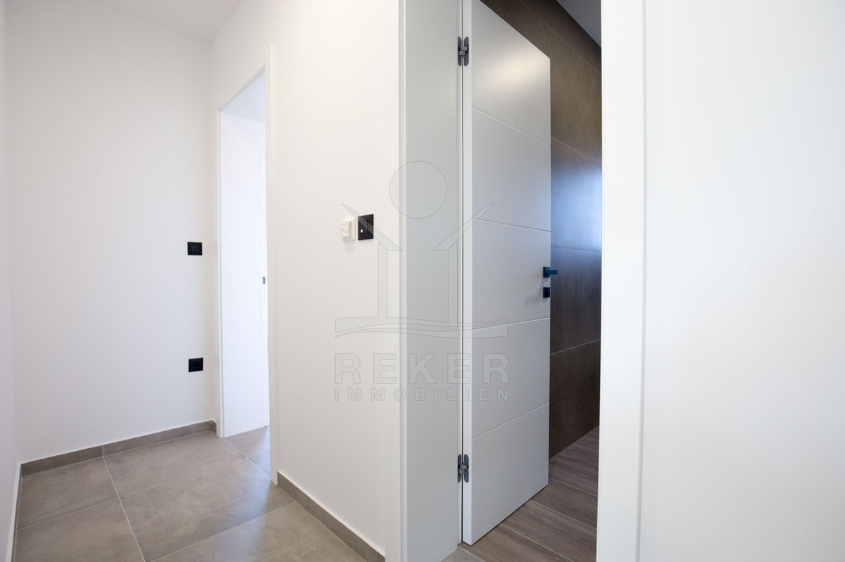 Der Neubau befindet sich in Privlaka, nur 50 Meter vom Meer entfernt, und bietet somit einen unmittelbaren Zugang zu den traumhaften Stränden. Die Lage ist ideal, da alle notwendigen Einrichtungen wie Einkaufsmöglichkeiten, Restaurants, Ambulanz, Apotheke und Geschäfte in unmittelbarer Nähe zu finden sind. Das bedeutet, dass Sie sich in dieser lebendigen Umgebung optimal versorgt fühlen. Die Wohnung liegt in einer ruhigen Gegend, was Ihnen eine friedliche Atmosphäre und Ruhe garantiert. Gleichzeitig sind Sie nur 15 Minuten Autofahrt von der lebhaften Stadt Zadar entfernt, die mit ihrem historischen Stadtzentrum und ihrem kulturellen Angebot lockt. Hier haben Sie die Möglichkeit, das mediterrane Leben in vollen Zügen zu genießen und sich von den Annehmlichkeiten der Umgebung verwöhnen zu lassen.