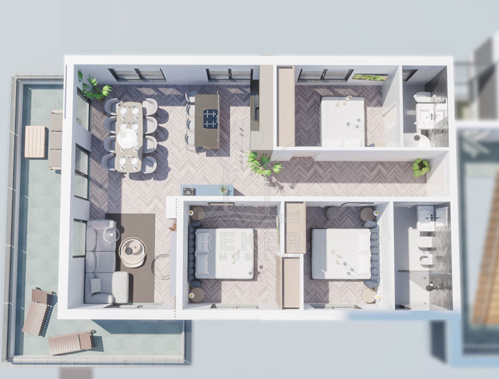 Die wunderschönen Parkettböden und erstklassigen Fliesen verleihen dieser 108 m² großen Wohnung einen besonderen Charme. Eine Klimaanlage mit Konverter sorgt für ein angenehmes Raumklima. Die Wohnung besteht aus einer Einbauküche, einem Esszimmer, einem Wohnzimmer, zwei Badezimmern und drei Schlafzimmern, die genug Platz für eine große Familie bieten. Der große Balkon von 27 m² lädt dazu ein, die Sonne zu genießen und sich zu entspannen. Lassen Sie sich von dieser Wohnung verzaubern und machen Sie es zu Ihrem neuen Zuhause!