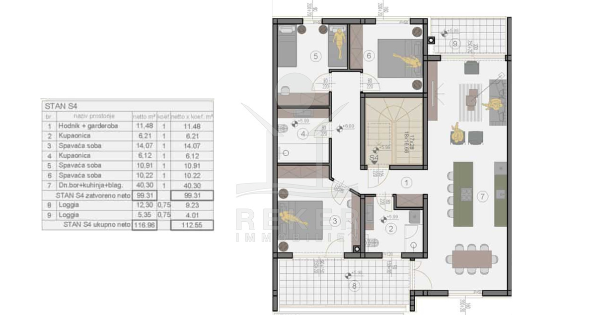 Die Immobilie ist mit einer Klimaanlage mit Inverter ausgestattet, die sowohl für Heizung als auch Kühlung sorgt. Zusätzlich besteht die Möglichkeit, eine Fußbodenheizung einzubauen, um maximalen Komfort zu gewährleisten. Die Wohnung bietet 2 Badezimmer, 3 Schlafzimmer und zwei Loggien, die sowohl für Entspannung als auch für den Genuss frischer Luft im Freien geeignet sind. Die Küche ist mit einem Esszimmer und einem geräumigen Wohnzimmer verbunden, ideal für gemütliches Beisammensein mit Familie und Freunden. Im Erdgeschoss des Gebäudes steht eine Lagerfläche von 2,09 m² zur Verfügung, die ideal ist, um zusätzlichen Stauraum für Gegenstände des täglichen Bedarfs zu schaffen. Diese praktische Ergänzung ermöglicht es Ihnen, Ihre Wohnung ordentlich und aufgeräumt zu halten.