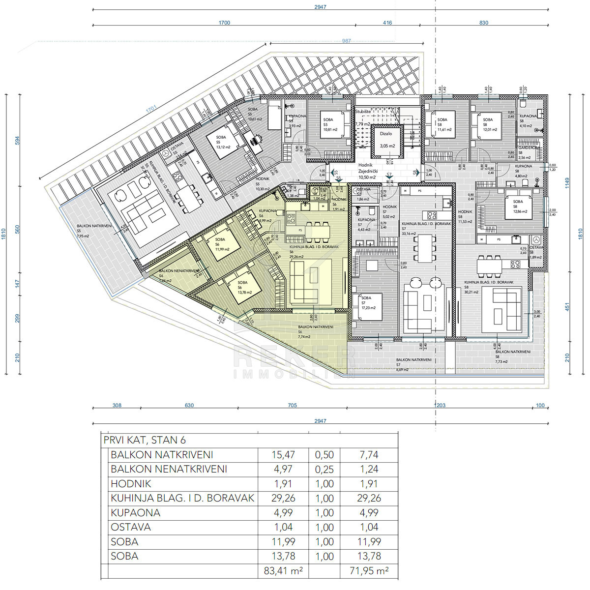 Die ideal gelegene Neubauwohnung in Rijeka befindet sich im ersten Stock eines Wohngebäudes mit insgesamt 18 Einheiten verteilt auf 4 Etagen. Der Baubeginn ist für Herbst 2024 geplant, wobei der Wohnkomfort durch Wärmepumpen für Heizen und Kühlen, Fußbodenheizung in den Badezimmern und elektrische Jalousien gewährleistet wird. Neben einem Aufzug und einem bequemen Treppenhaus bietet die Tiefgarage Parkmöglichkeiten und Lagerräume für jede Wohnung, wobei zwei Parkplätze pro Einheit und ein zusätzlicher Abstellraum vorgesehen sind. Die Vorbereitung der Infrastruktur für das Laden von Elektroautos unterstreicht die zukunftsorientierte Ausrichtung des Gebäudes.