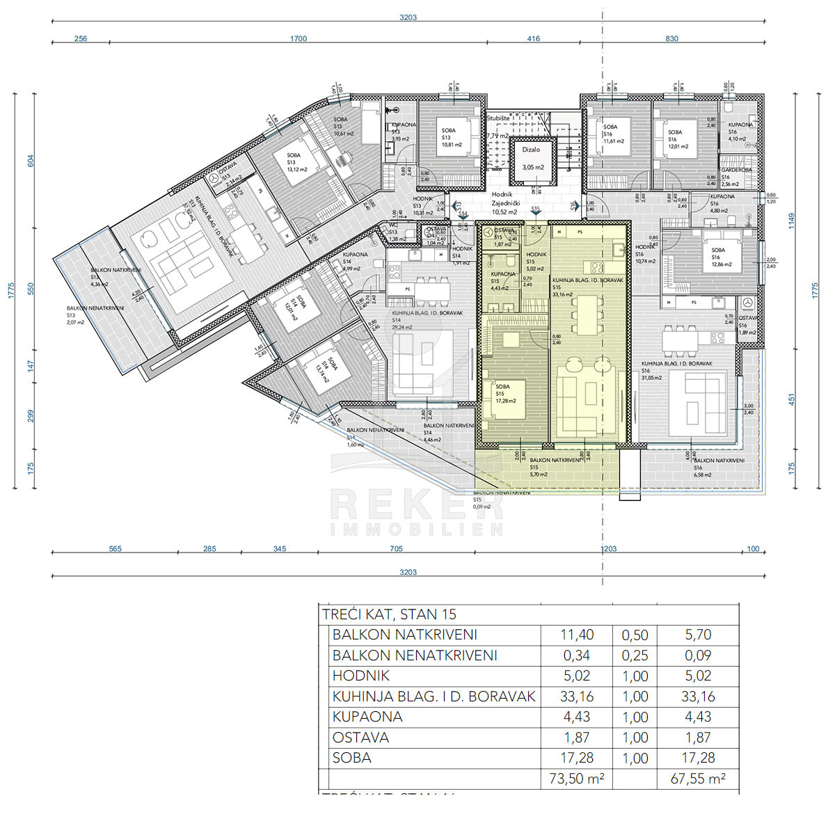 In Rijeka entsteht ein geplantes Wohngebäude, das eine exklusive Neubauwohnung im 2. Stock beherbergen wird. Der Baubeginn ist für Herbst 2024 geplant, und die Wohnung wird Teil eines modernen Komplexes mit insgesamt 18 Wohneinheiten sein. Ausgestattet mit modernster Technologie, wird die Wohnung Wärmepumpen, Fußbodenheizung, elektrische Jalousien, Insektenschutznetze, einen Aufzug und ein komfortables Treppenhaus bieten. Darüber hinaus stehen in der Tiefgarage 2 Stellplätze und ein Abstellraum zur Verfügung, während die Infrastruktur für das Laden von Elektroautos vorbereitet wird.