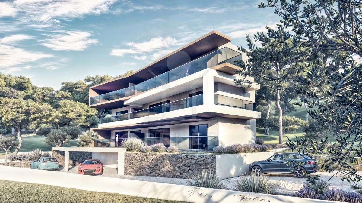 In einer stillen Seitenbucht, rund 30 Meter vom Meer entfernt, entsteht ein modernes Wohngebäude mit sechs exklusiven Apartments. Klare Linien, Glas und helle Materialien bestimmen die Architektur. Das Gebäude fügt sich gut in die Landschaft ein und schafft eine ruhige, elegante Stimmung. Für jede Einheit steht ein eigener Parkplatz bereit. Die Außenflächen sind gepflegt, mit mediterranen Pflanzen und gepflasterten Wegen. Ein Ort mit viel Privatsphäre.
