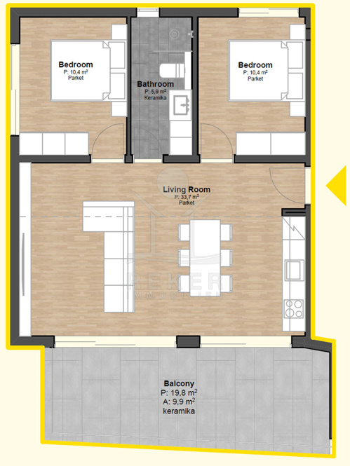 Mit 60,32 m² Wohnfläche bietet die Wohnung S4 eine klare und gut nutzbare Raumstruktur mit zwei Schlafzimmern, einem Badezimmer und einem offenen Wohn- und Essbereich. Große Fensterflächen lassen viel Licht in die Räume und verstärken den Bezug zum Meer. Eichenparkett der ersten Kategorie bringt Wärme in das Interieur. Italienische Keramik in Bad und Küche setzt moderne Akzente. Aluminiumfenster mit Dreifachverglasung fördern Helligkeit und Energieeffizienz. Das Multi-Split-System mit Wärmepumpe hält die Räume angenehm temperiert. Ein stimmiges Gesamtbild.
