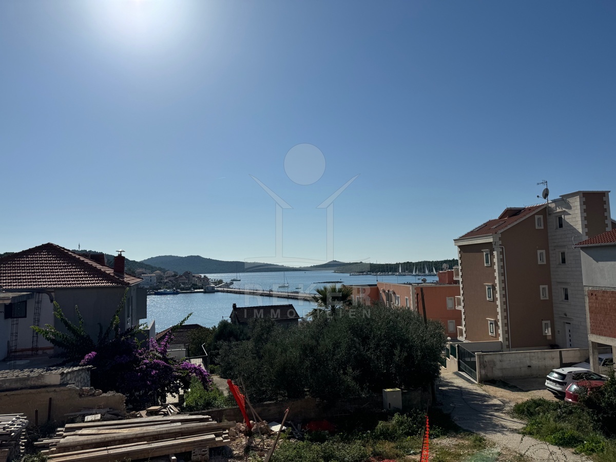 Nur 60 Meter zum Meer. Das Haus steht in dritter Reihe in Rogoznica, leicht am Hang. Das bringt einen besseren Blick aufs Meer. Ruhige Nachbarschaft, kurze Wege, klare Struktur. Und: Jeder hat seinen eigenen Parkplatz direkt vorm Haus. Sieben Wohnungen. Vier Etagen. Fertig im Sommer 2025. Neubau, Erstbezug, saubere Linien.