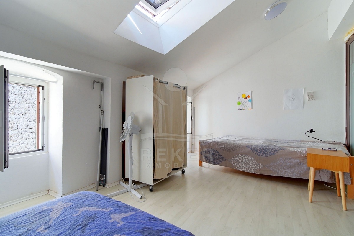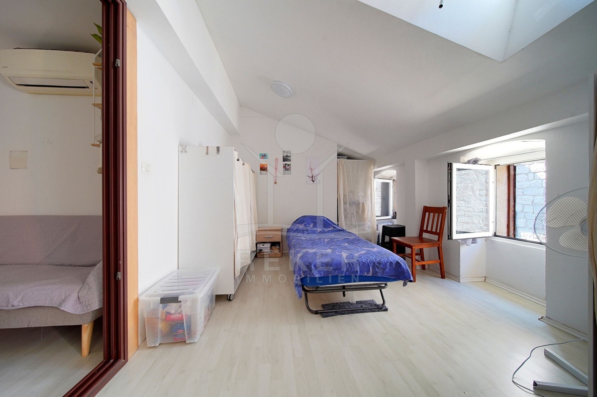 Im historischen Zentrum von Rovinj, nur wenige Schritte vom Meer entfernt, befinden sich zwei nebeneinanderliegende Wohnungen im dritten Stock eines traditionellen Steinhauses. Die Lage ist außergewöhnlich: In nur 60 Metern erreichen Sie das Meer, den nächsten Strand nach einem Spaziergang von 350 Metern. Rundherum pulsiert das mediterrane Stadtleben mit kleinen Geschäften, Cafés, Restaurants und der Marina. Auch Schule und Kindergarten liegen ganz in der Nähe.
