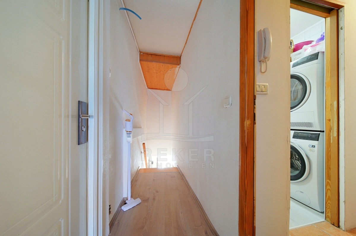 Keramik- und Laminatböden schaffen eine helle, pflegeleichte Atmosphäre. Sichtbare Holzbalkendecken, alte Steinmauern und das klassische Satteldach bewahren den authentischen Charakter des Hauses und verleihen den Räumen besonderen Charme. Dank kluger Raumaufteilung eignen sich die Wohnungen als privates Zuhause mit Gästebereich oder zur Ferienvermietung mit attraktiver Renditechance.