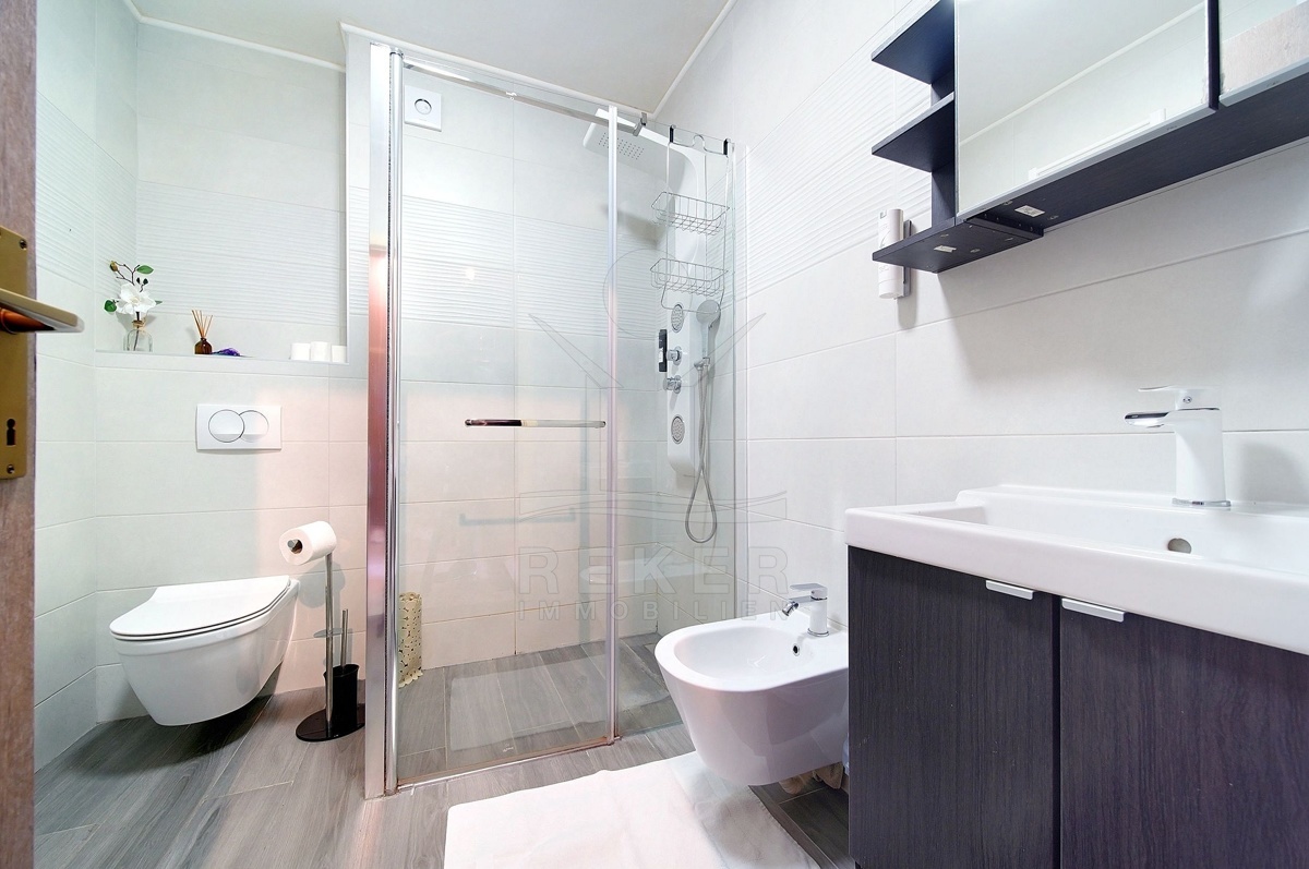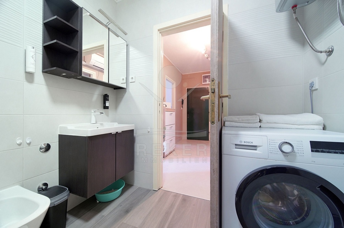 Apartment präsentiert sich mit hochwertigen Schreinerei-Arbeiten, darunter Holzfensterläden, eine Eingangstür aus Holz und klassische Innentüren. Die moderne Ausstattung umfasst eine Klimaanlage, einen elektrischen Warmwasserspeicher und eine effiziente Heizung. Der Bodenbelag besteht aus keramischen Fliesen und Laminatboden für ein zeitgemäßes Ambiente. Mit kostenlosem Parkplatz im Hof für Mieter lässt diese Immobilie keine Wünsche offen und bietet ein komfortables und modernes Wohnen in der malerischen Küstenstadt Rovinj.