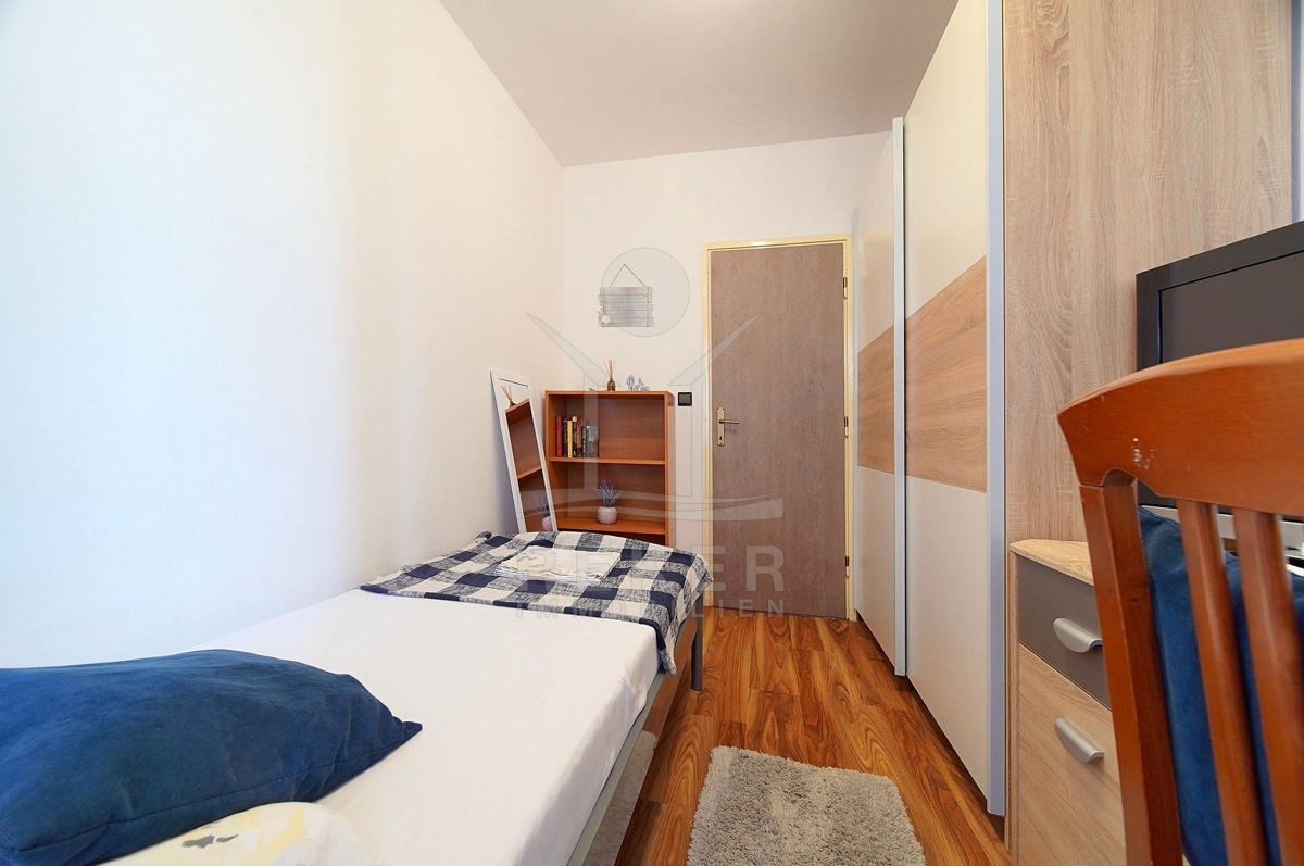 Die Wohnung wird vollständig mit hochwertigen Möbeln verkauft, die Stil und Komfort vereinen. Der aktive Wohnbereich besticht durch ein offenes Konzept mit großzügigen, luftigen Räumen, die ideal für gesellige Stunden sind. Ein Flur führt zu einem einladenden Wohn-, Ess- und Küchenbereich, der der zentrale Treffpunkt des Hauses ist. Eine überdachte Loggia (11 m²) lädt dazu ein, Zeit im Freien zu verbringen und die frische Luft zu genießen.