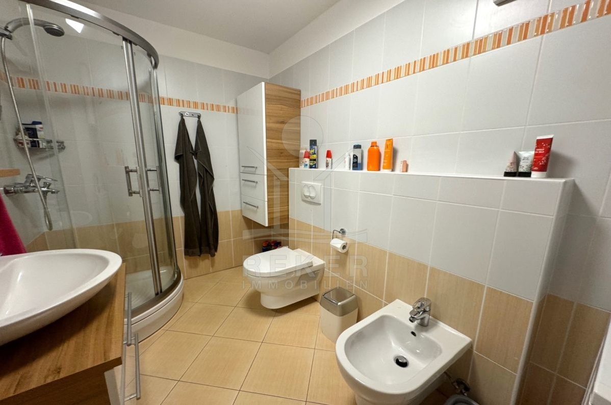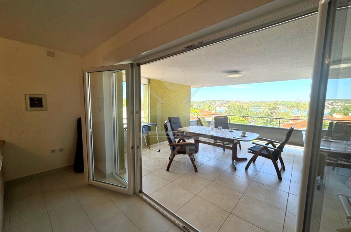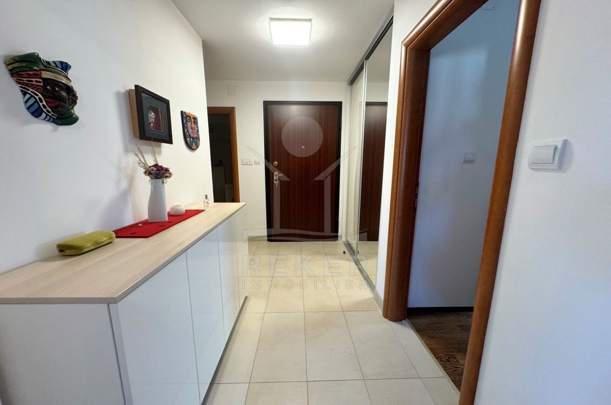 Die 80 m² große Wohnung bietet eine durchdachte Raumaufteilung mit einem Eingangsbereich, Flur, zwei Schlafzimmern, einem Wohnzimmer mit offener Küche und Essbereich, einem Badezimmer und einer separaten Toilette. Eine besondere Attraktion ist der 19 m² große Balkon/Loggia mit einem wunderschönen Blick auf die Umgebung und das Meer. Die Wohnung wird möbliert verkauft und bietet somit eine sofortige Wohlfühlatmosphäre.