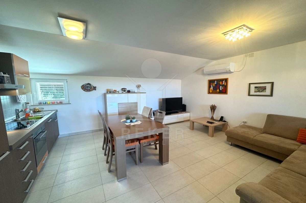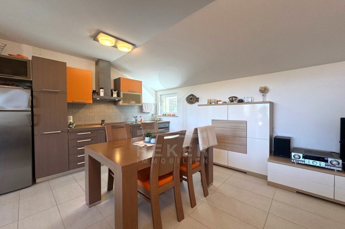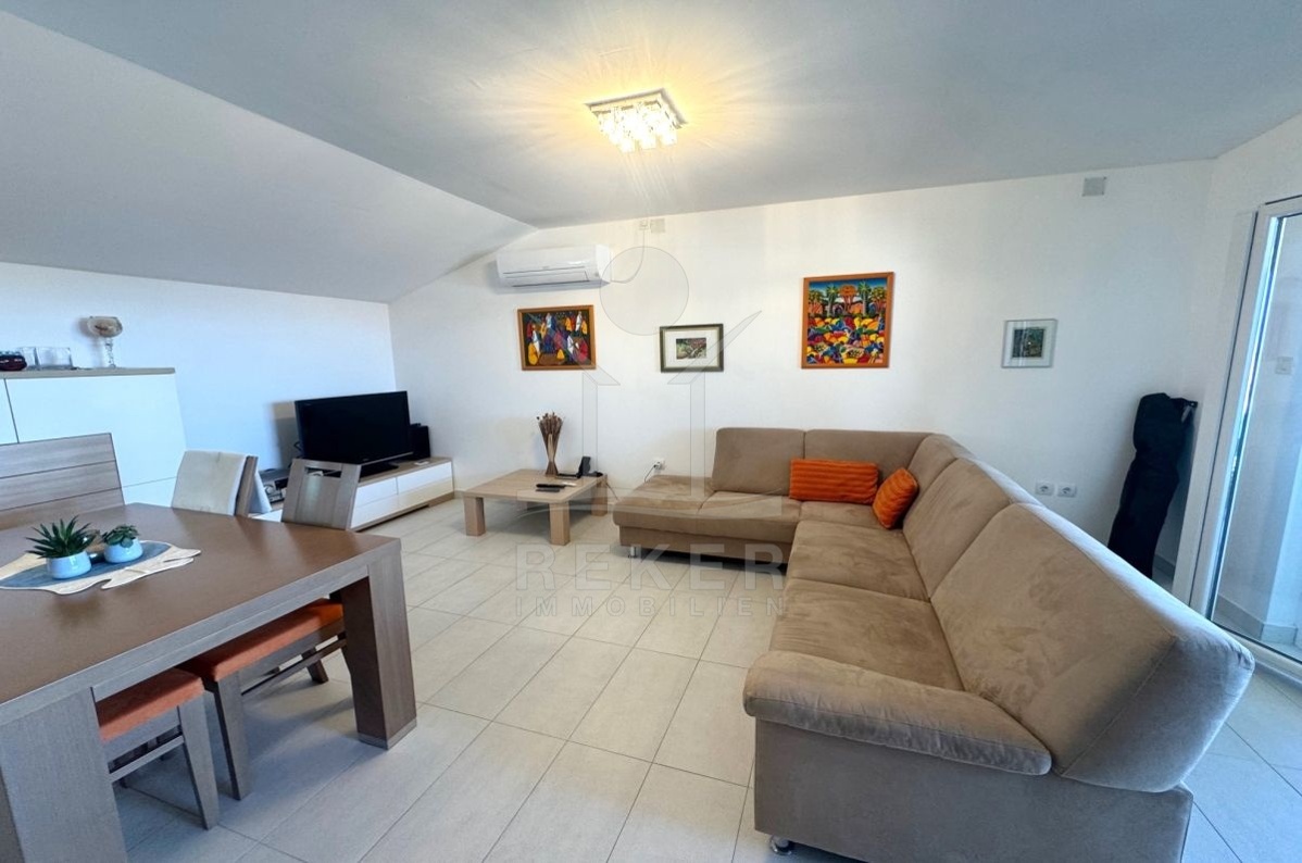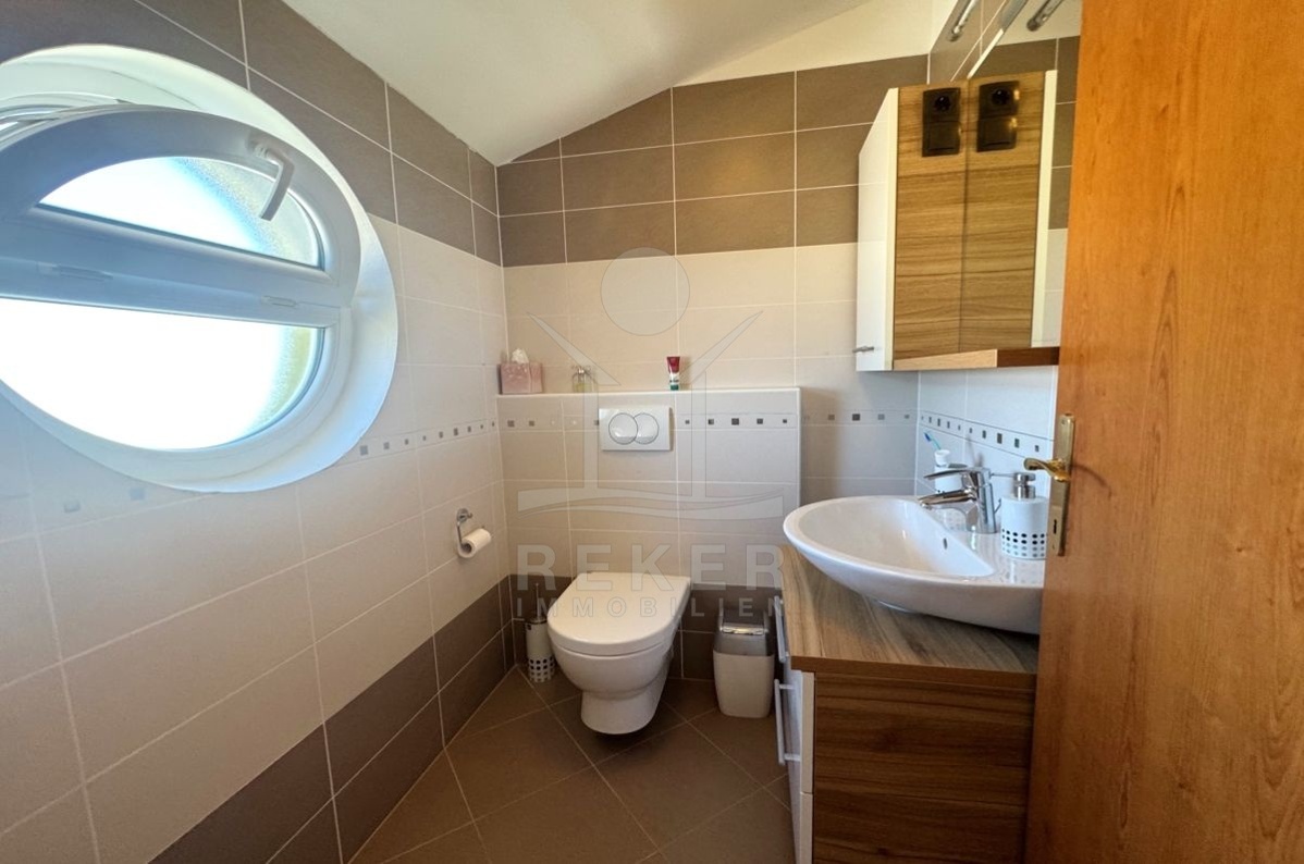 Die Wohnung befindet sich im 2. Stock eines Mehrfamilienhauses in Meernähe. Die hochwertige Konstruktion und Ausstattung sowie die Klimaanlage sorgen für Komfort und Eleganz. Ein Parkplatz steht den Bewohnern zur Verfügung.