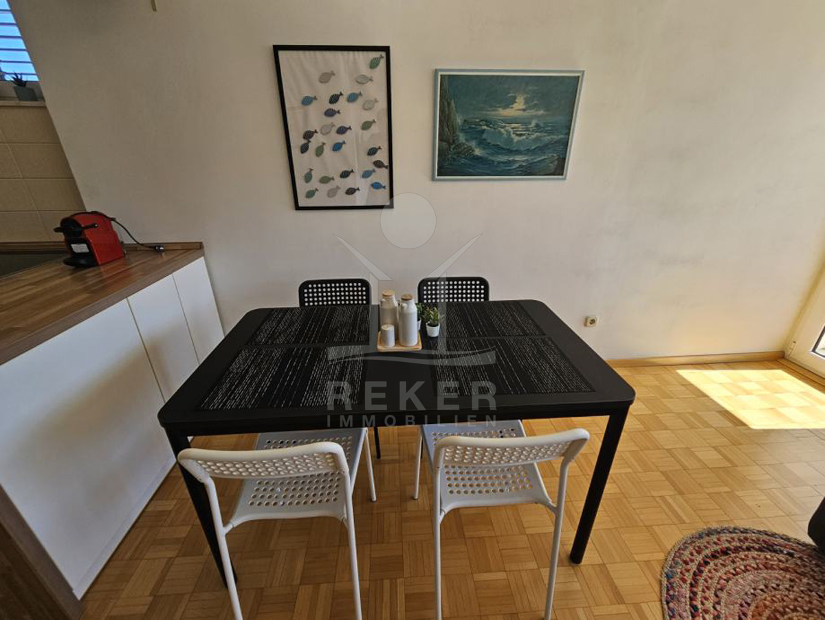 Drinnen ist die Raumaufteilung klar strukturiert. Küche, Essbereich und Wohnzimmer greifen offen ineinander – mit viel Licht durch die breite Fensterfront. Die Möblierung wirkt modern, gemütlich und ist sofort nutzbar. Schlafzimmer und Bad sind funktional und gepflegt. Die Wohnung wird so verkauft, wie sie ist: einzugsbereit – oder vermietbar ab dem ersten Tag.