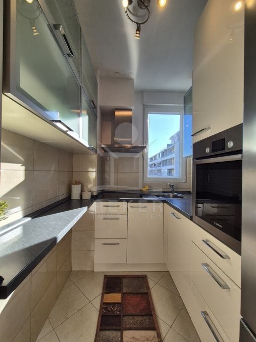 Die Wohnung bietet 54 m² Wohnfläche, die optimal genutzt werden. Sie umfasst 2 Schlafzimmer, ein Badezimmer, eine Küche mit einem einladenden Essbereich und ein helles Wohnzimmer. Ein besonderes Highlight ist die 4,58 m² große, nach Süden ausgerichtete Loggia, die ideal für entspannte Stunden im Freien ist. Ein Garagenstellplatz von 17 m² ergänzt den Wohnkomfort.
