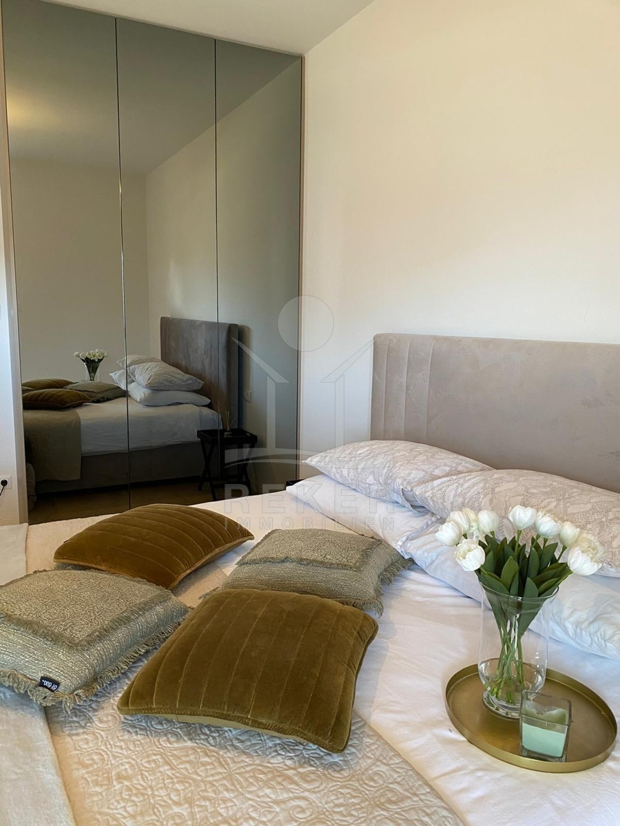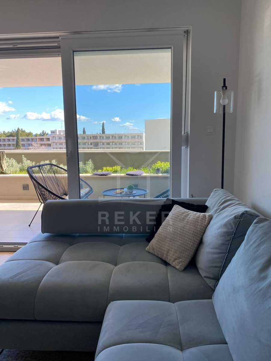 Die geräumige Wohnung erstreckt sich über 65 m² (45 m² Innenfläche plus 20 m² Terrasse) und bietet viel Platz für komfortables Wohnen. Das helle und großzügige Wohnzimmer empfängt Sie mit einladender Atmosphäre, während die modern gestaltete Küche praktische Funktionen und Stil vereint. Das komfortable Schlafzimmer ist ideal für erholsame Nächte, und das luxuriöse Badezimmer sorgt für Wellness-Feeling. Die großzügige Terrasse ist der perfekte Ort, um warme Sommerabende zu genießen und das Leben im Freien zu zelebrieren.
