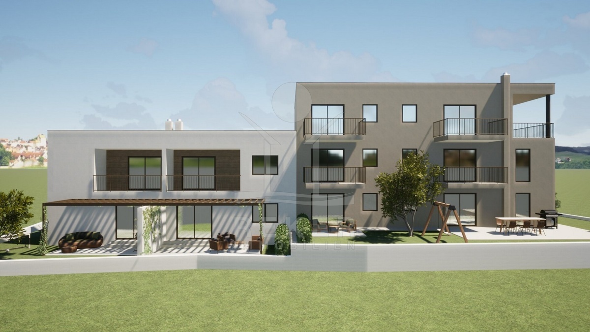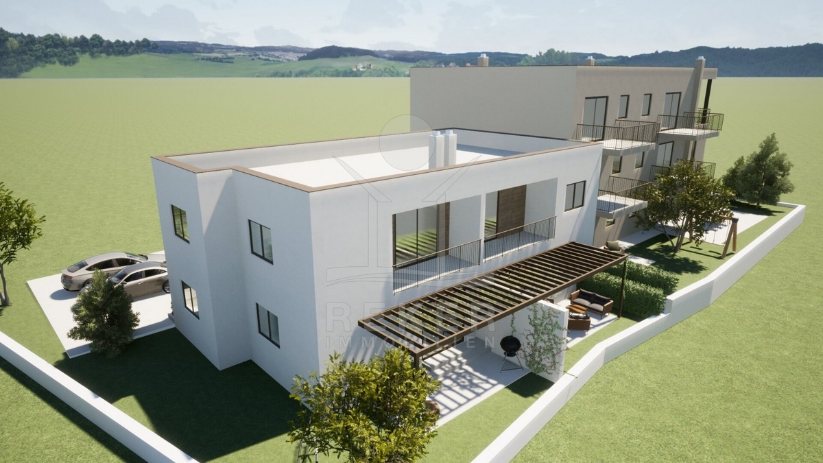 Tar liegt im Herzen Istriens – ruhig, freundlich, zentral. Die Wohnungen entstehen mitten im Ort, nur 100 Meter vom Zentrum entfernt. Alles Wichtige ist gleich ums Eck: Schule, Laden, alltägliche Wege. Trotzdem bleibt es ruhig. Zum Meer sind es etwa drei Kilometer – gut erreichbar, aber weit genug für entspanntes Wohnen ohne Touristentrubel. Geplant sind zwei kleine Wohnhäuser mit je vier Einheiten. Der Bau läuft, Einzug ist für Ende 2026 geplant. Jede Wohnung hat zwei eigene Parkplätze.