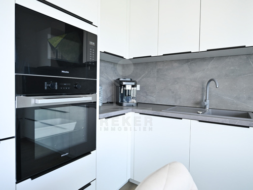 Zwei behagliche Schlafzimmer und ein modernes Bad runden das Raumangebot ab. Die Wohnung ist vollständig eingerichtet und kann sofort bezogen werden. Elektrische Fußbodenheizung und Mitsubishi Inverter-Klimaanlagen sorgen das ganze Jahr über für ein angenehmes Raumklima.