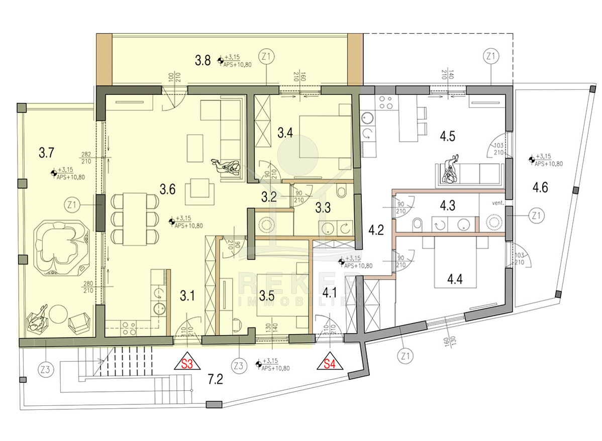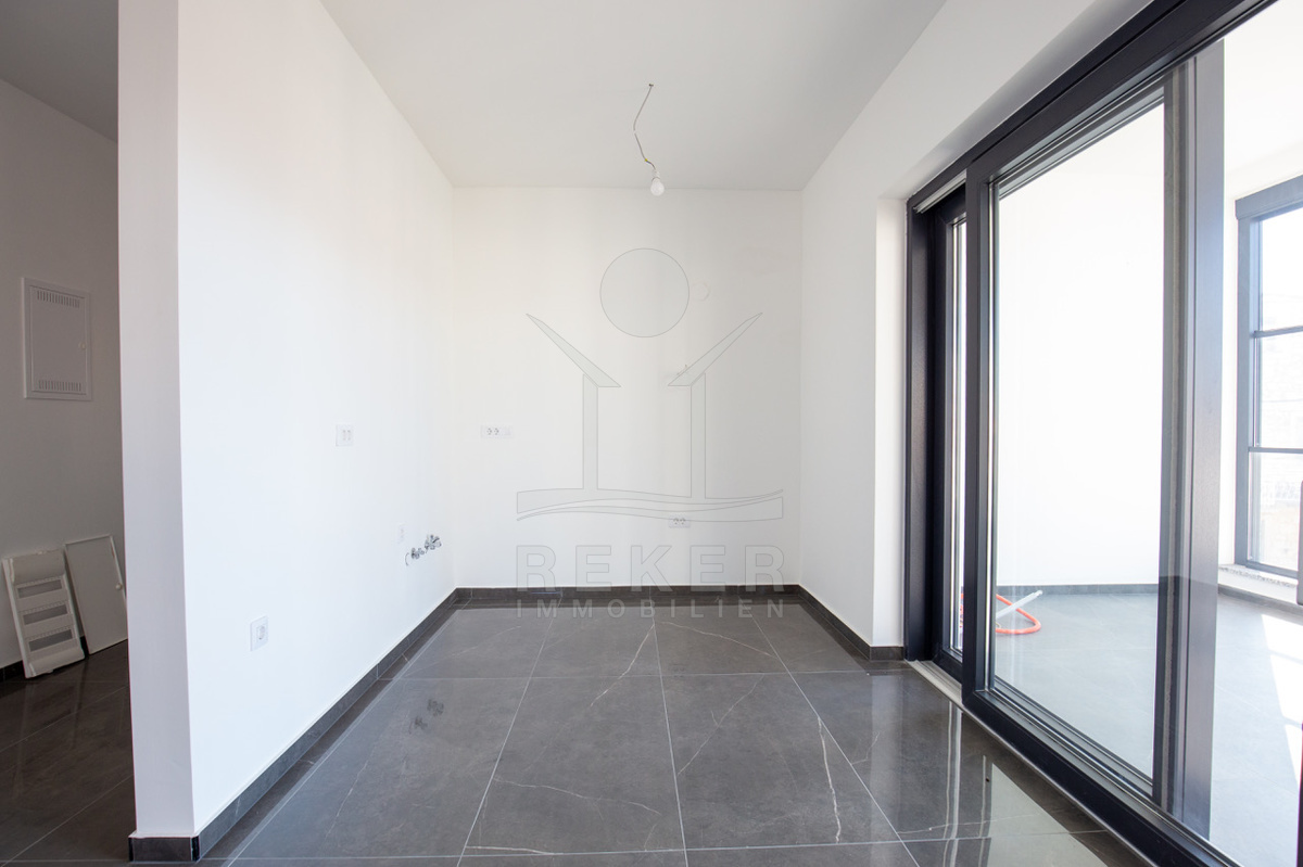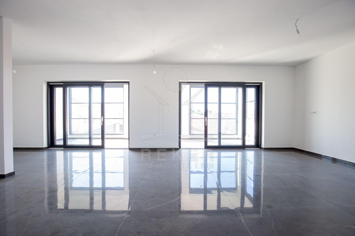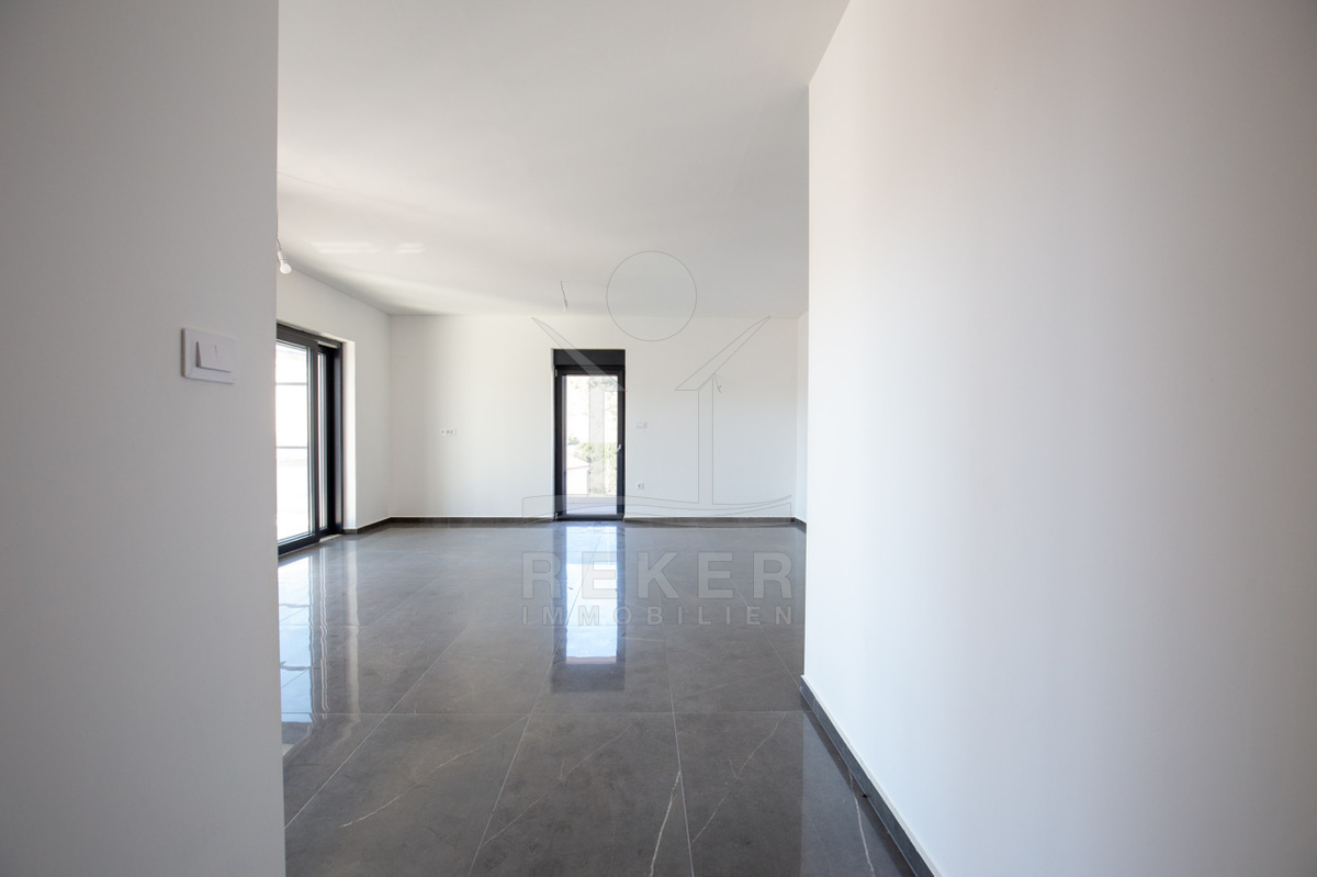 Die schöne Erdgeschosswohnung bietet eine Wohnfläche von 123 m², die durch einen offenen Grundriss besticht. Der lichtdurchflutete Wohn-, Ess- und Küchenbereich schafft eine einladende Atmosphäre mit großräumige Terrasse für erholsame Stunden im Freien. Zwei Schlafzimmer, ein großer Raum für Wellness und ein stilvolles Badezimmer sorgen für zusätzlichen Komfort. Die Klimaanlage sorgt an heißen Tagen für eine angenehme Raumtemperatur.