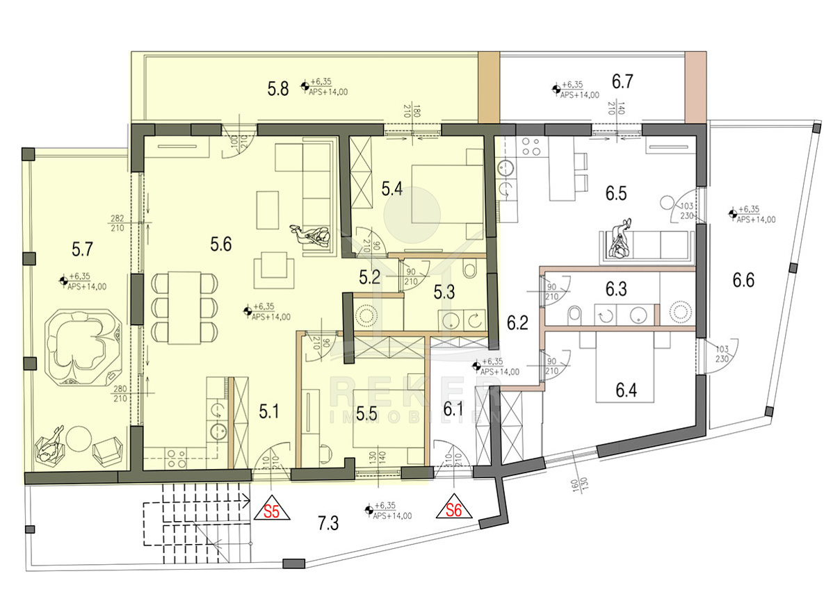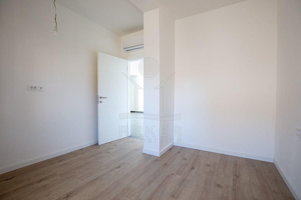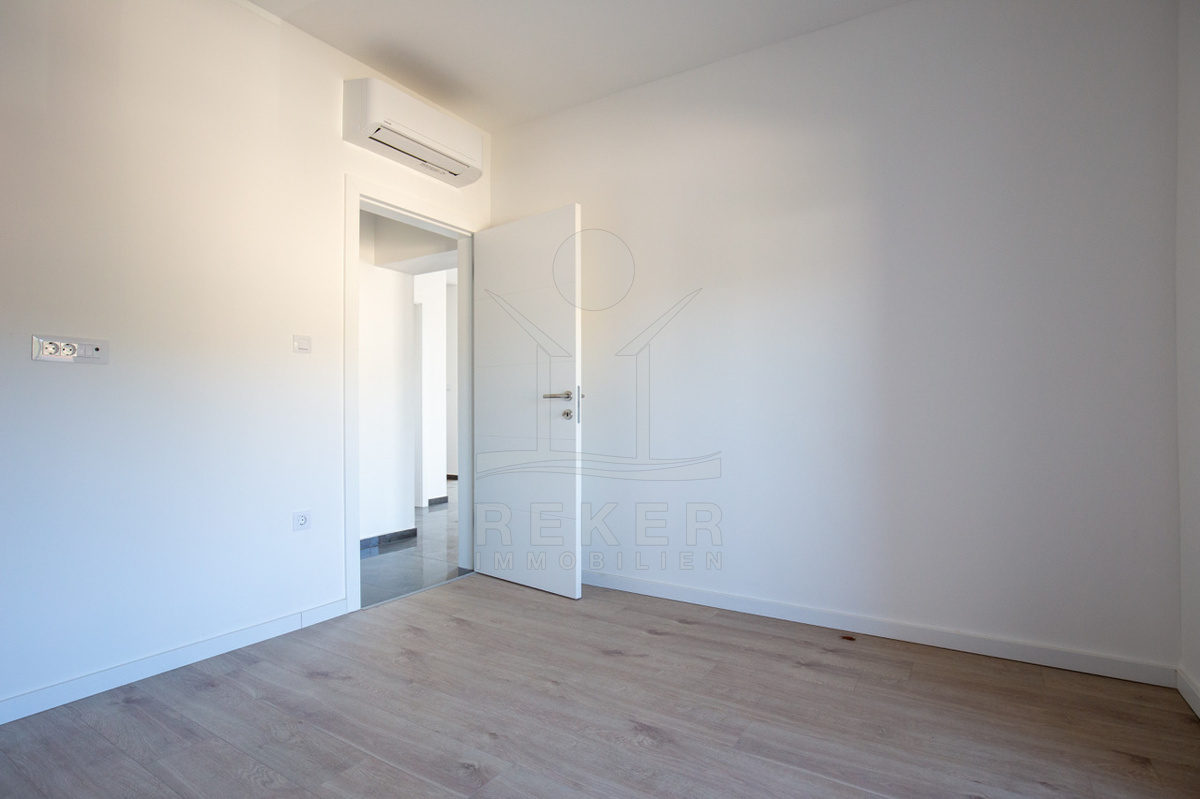 Die schöne Erdgeschosswohnung bietet eine Wohnfläche von 123 m², die durch einen offenen Grundriss besticht. Der lichtdurchflutete Wohn-, Ess- und Küchenbereich schafft eine einladende Atmosphäre mit großräumige Terrasse für erholsame Stunden im Freien. Zwei Schlafzimmer, ein großer Raum für Wellness und ein stilvolles Badezimmer sorgen für zusätzlichen Komfort. Die Klimaanlage sorgt an heißen Tagen für eine angenehme Raumtemperatur.
