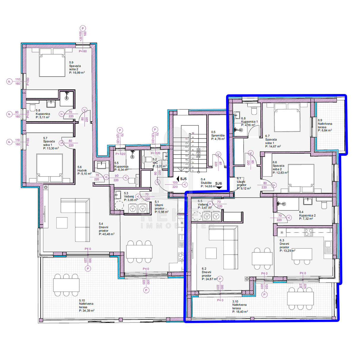 Die Neubauwohnung befindet sich im 2. Stock eines modernen Neubaugebäudes mit insgesamt 6 Wohneinheiten, erstreckt sich über 2 Etagen und wird mit hochwertigen Materialien und den neuesten Baustandards ausgestattet. Zur Ausstattung gehören ALU-Fenster, ALU-Balkonschiebetüren, elektrische Jalousien, Natursteinböden, moderne Badarmaturen, Klimaanlage in Schlafzimmern und Wohnzimmer sowie Fußbodenheizung. Die voraussichtliche Fertigstellung ist im Frühjahr 2025 geplant, und jede Wohnung verfügt über 2 Parkplätze. Die Wohnungen im ersten und zweiten Stock bieten Meerblick.